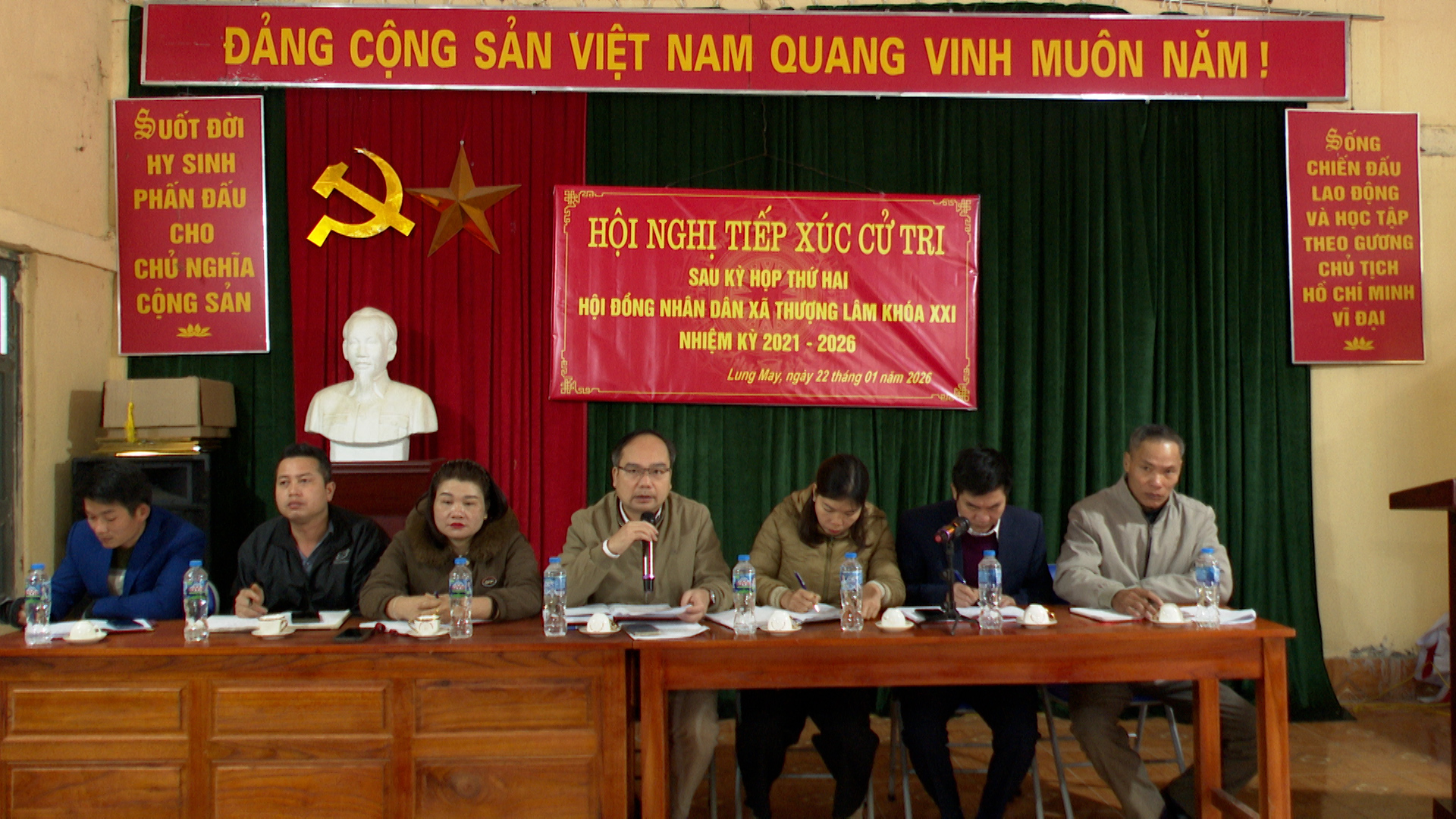 Sáng 22/1/2026, tại nhà văn hoá thôn Lung May, xã Thượng Lâm. Tổ Đại biểu số 1 HĐND xã Thượng Lâm gồm các ông bà: Hoàng Anh Trung, Uỷ viên Ban Thường vụ, Chủ nhiệm Uỷ ban Kiểm tra Đảng uỷ, Trưởng Ban Kinh tế - Ngân sách HĐND xã; Nguyễn Thị Nhung, Uỷ viên Ban Chấp hành Đảng bộ xã, Phó trưởng Ban Văn hoá – Xã hội HĐND xã; Nguyễn Văn Tâm, Uỷ viên Ban Chấp hành Đảng bộ xã, Phó Chủ nhiệm Uỷ ban Kiểm tra Đảng uỷ xã; Quan Văn Chính, Nguyên Chủ tịch MTTQ xã; Triệu Văn Ton, Bí thư Chi bộ, Trưởng thôn Nà Ráo; Chẩu Văn Khai, Bí thư Chi bộ thôn Nà Vàng; Hoàng Thị Thảo, Hội viên nông dân thôn Lung May; Ma Thị Thu Hà, Chi hội trưởng Phụ nữ thôn Nà Kẹm đã tổ chức tiếp xúc cử tri với các thôn Lung May, Nà Vàng, Nà Ráo, Nà Kẹm. Dự hội nghị tiếp xúc cử tri có Bí thư Chi bộ, Trưởng thôn, Trưởng Ban công tác Mặt trận thôn; Chi hội trưởng các chi đoàn, chi hội; đông đảo cử tri 4 thôn Lung May, Nà Vàng, Nà Ráo, Nà Kẹm.