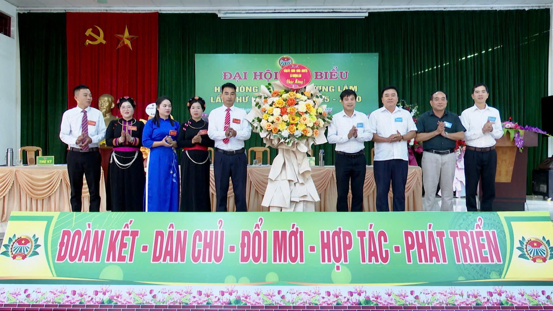 Lãnh đạo Ngân hàng Nông nghiệp và Phát triển nông thôn (Agribank) Chi nhánh Lâm Bình tặng hoa chúc mừng Đại hội