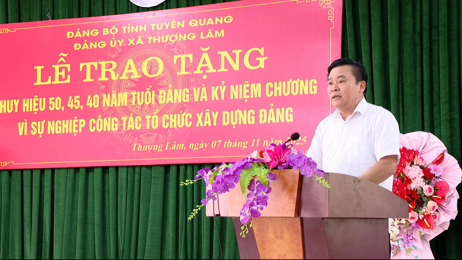 Phát biểu tại buổi Lễ, đồng chí Quan Văn Phùng, Phó Bí thư Thường trực Đảng ủy, Chủ tịch HĐND xã chúc mừng các đồng chí đảng viên được nhận Huy hiệu Đảng đợt 7/11/2025. Đây là phần thưởng cao quý của Đảng Cộng sản Việt Nam trao tặng cho những đảng viên tiêu biểu, trung kiên, đã có nhiều năm cống hiến cho sự nghiệp cách mạng. Đồng chí khẳng định, Huy hiệu Đảng là niềm vinh dự, tự hào không chỉ của cá nhân đảng viên mà còn là niềm vui chung của toàn Đảng bộ xã Thượng Lâm, thể hiện sự trưởng thành, lớn mạnh của tổ chức Đảng và phong trào cách mạng của địa phương.