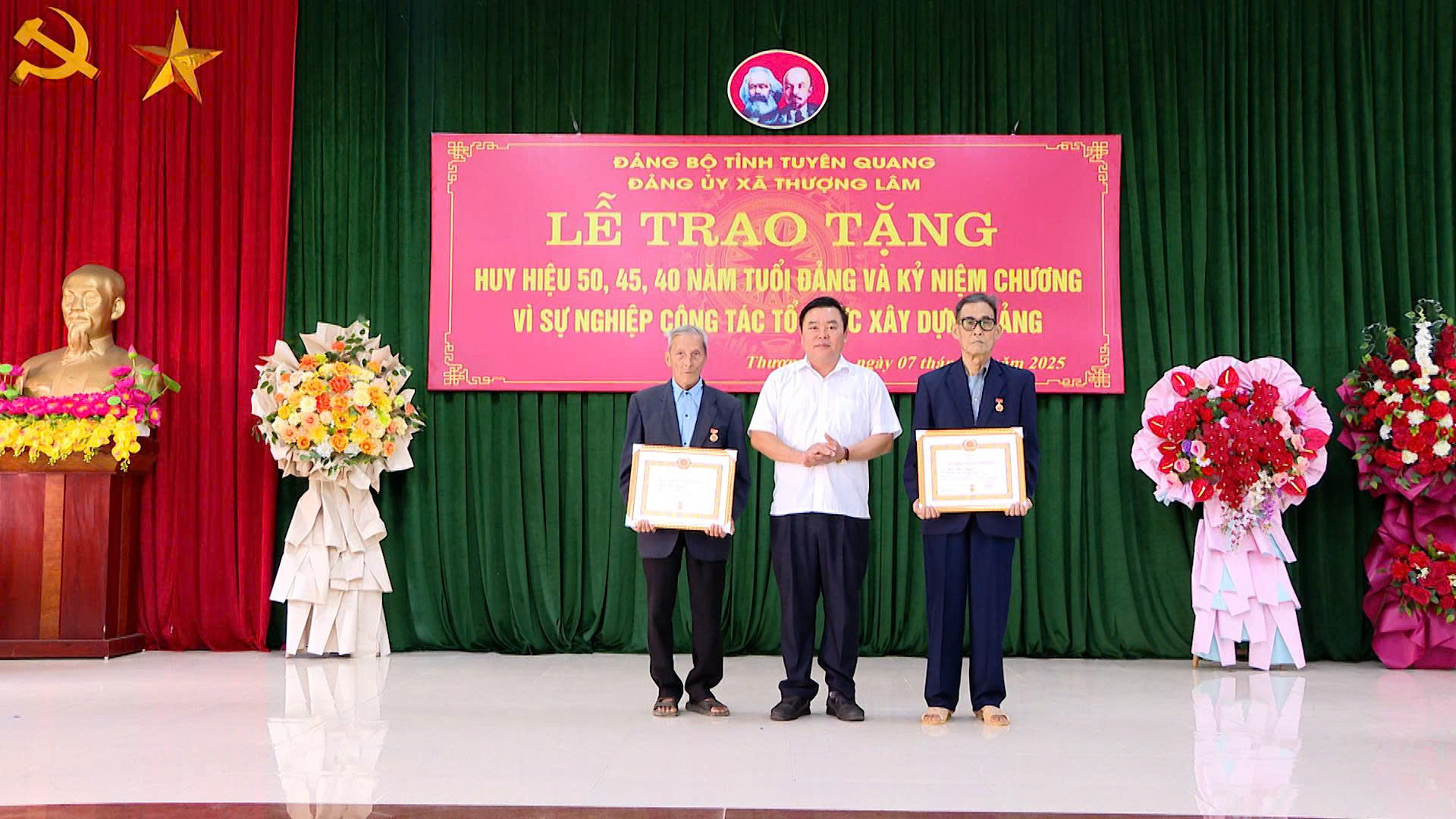 Tại buổi Lễ, Đảng ủy xã Thượng Lâm đã trao Huy hiệu 50 năm tuổi Đảng cho 2 đồng chí đảng viên và 1 đồng chí nhận Huy hiệu 40 năm tuổi Đảng. Đây là phần thưởng cao quý của Đảng, ghi nhận quá trình rèn luyện, cống hiến và lòng trung thành của các đảng viên với sự nghiệp cách mạng.