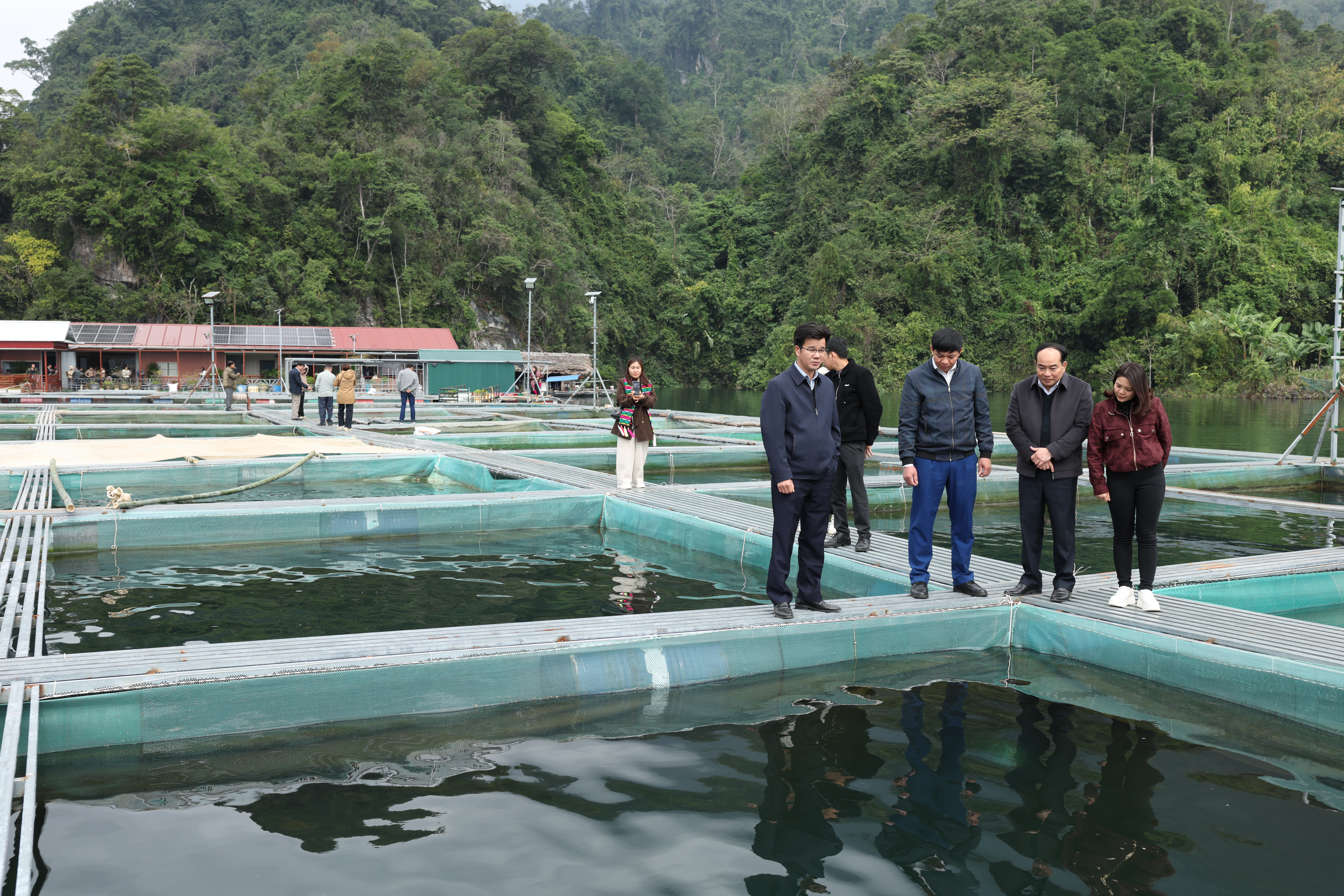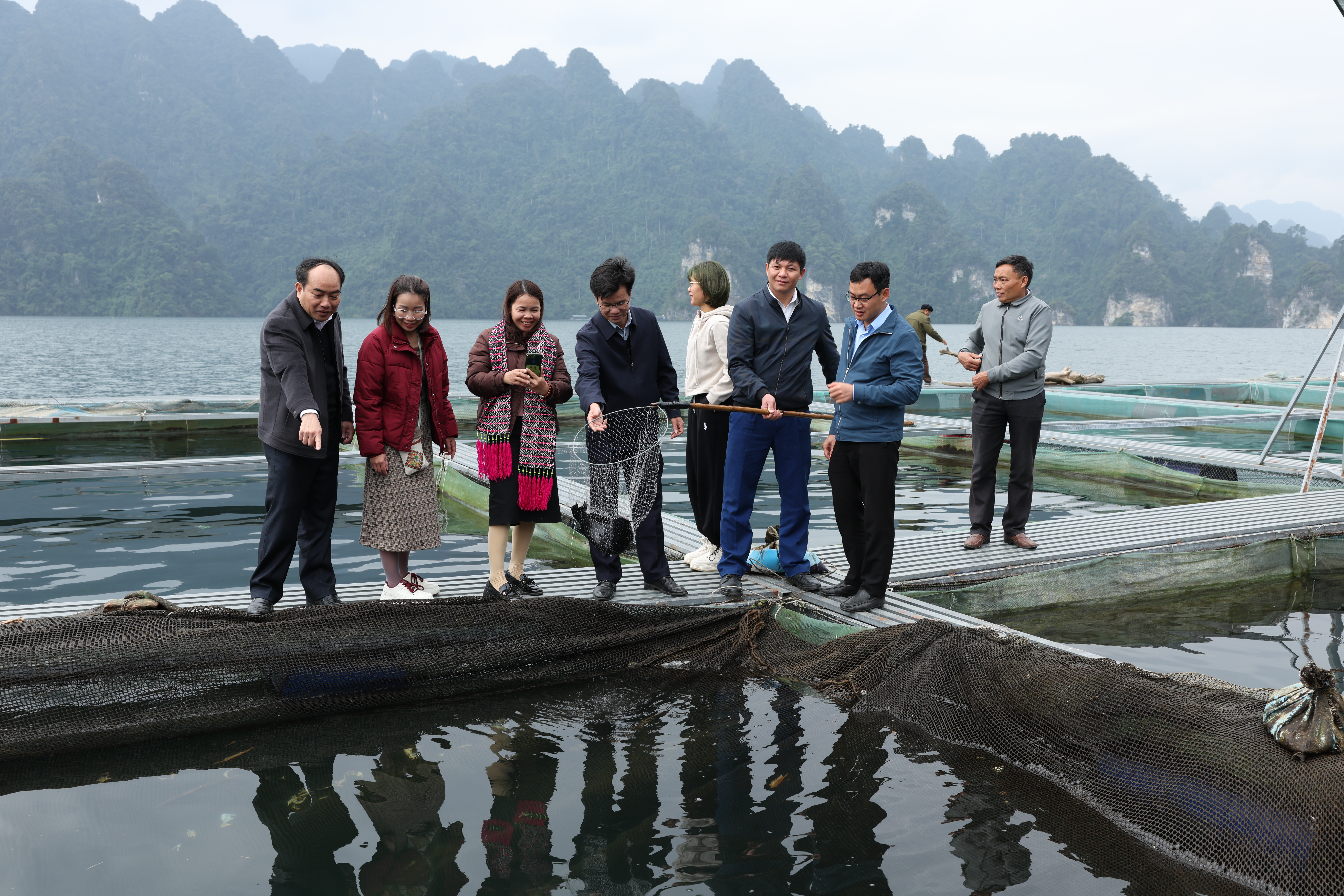 Đoàn tham quan HTX nuôi cá lồng trên lòng hồ Na Hang – Lâm Bình.