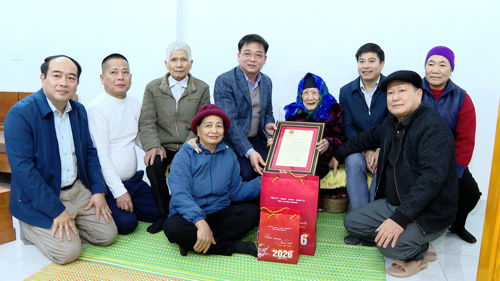 Đồng chí Nguyễn Hưng Vượng, Ủy viên Ban Thường vụ Tỉnh ủy, Chủ nhiệm Ủy ban Kiểm tra Tỉnh ủy, cùng lãnh đạo xã Thượng Lâm trao quà cho các cụ cao tuổi trên địa bàn