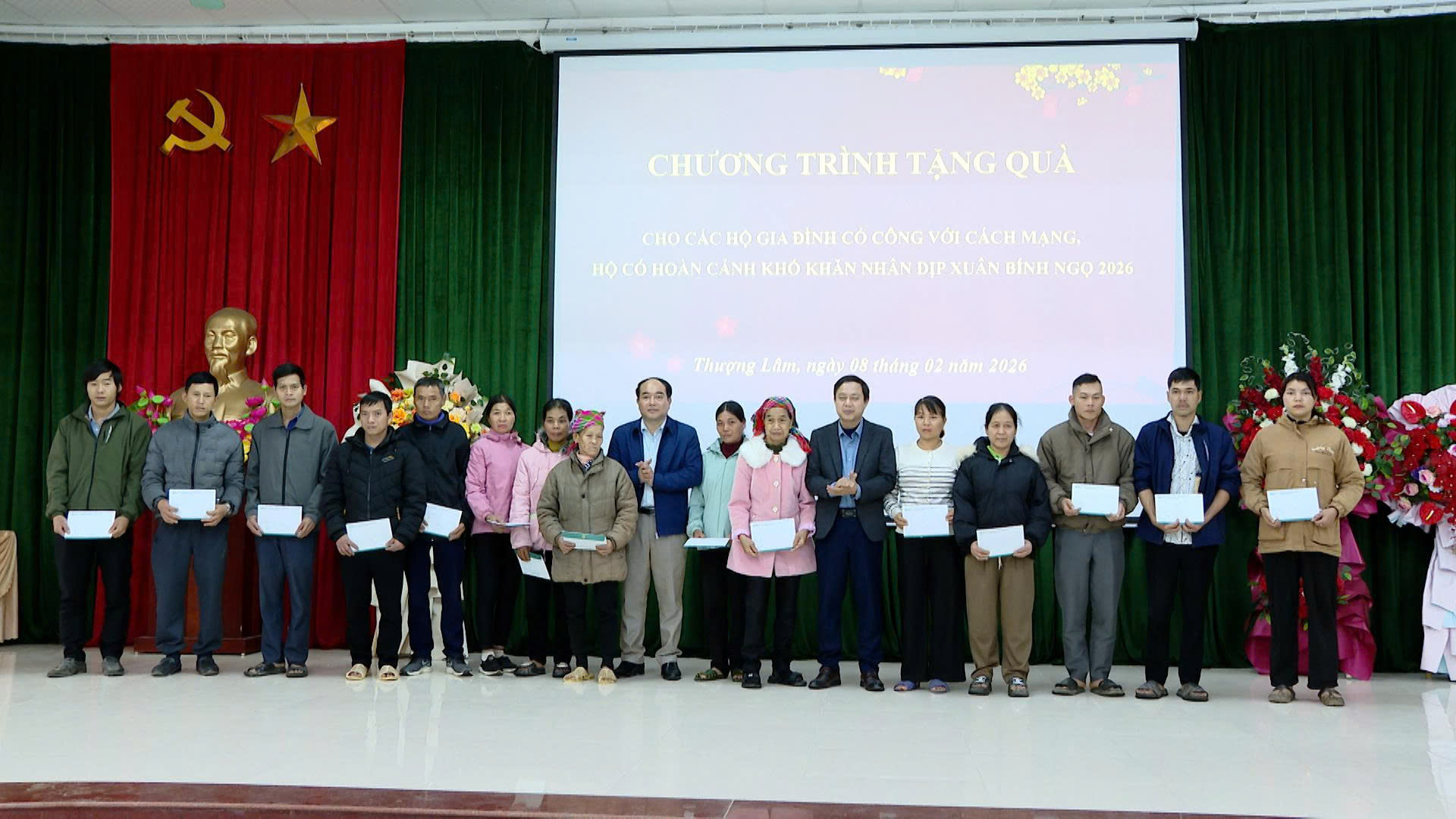 Đồng chí Nguyễn Hưng Vượng, Ủy viên Ban Thường vụ Tỉnh ủy, Chủ nhiệm Ủy ban Kiểm tra Tỉnh ủy, cùng lãnh đạo xã Thượng Lâm trao quà người có công và có hoàn cảnh khó khăn trên địa bàn