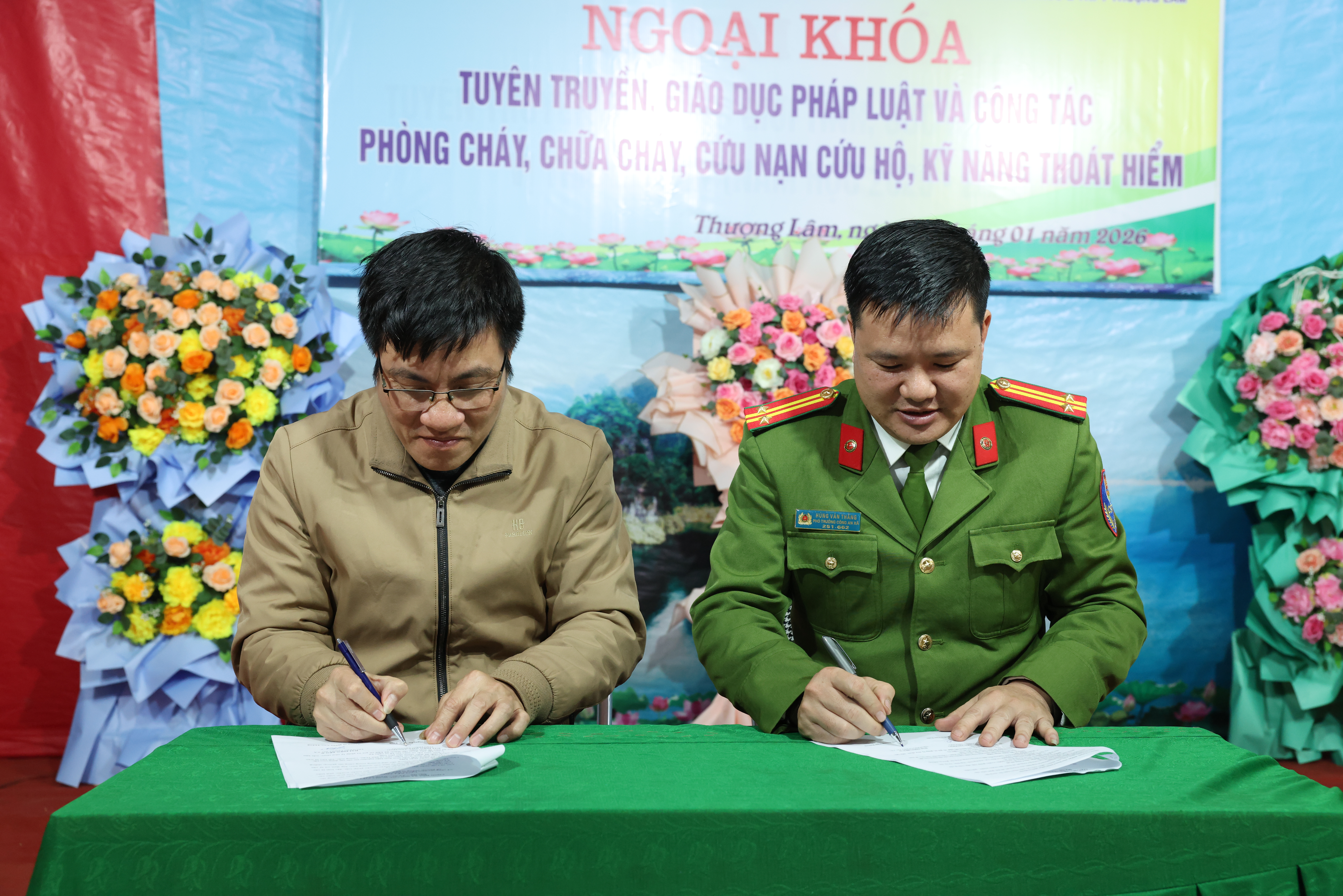 Lãnh đạo Trường THCS&THPT và Công an xã Thượng Lâm ký cam kết thực hiện nghiêm các quy đinh của pháp luật