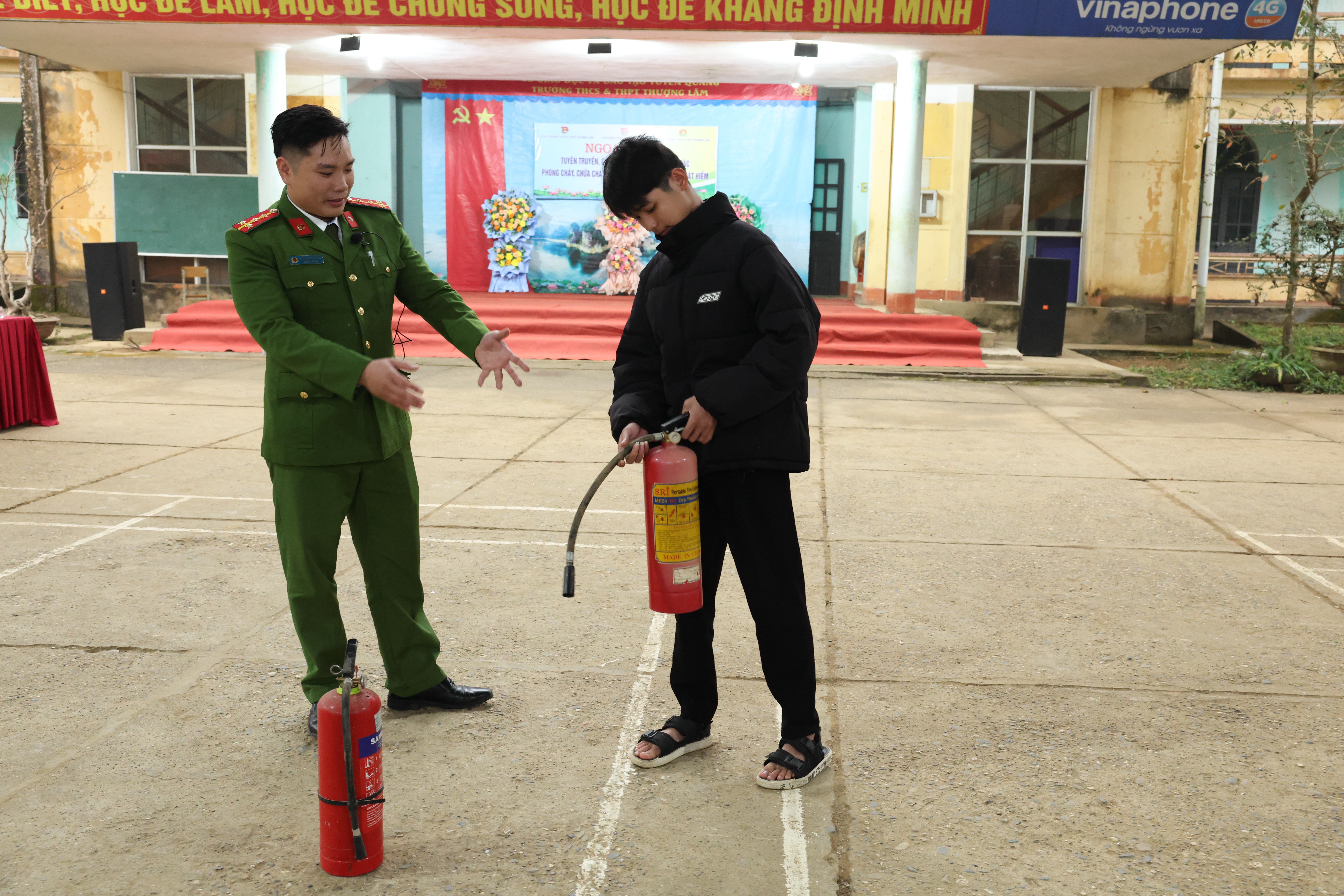 Bên cạnh nội dung tuyên truyền, lực lượng Công an xã đã trực tiếp hướng dẫn các kỹ năng phòng cháy, chữa cháy và thoát nạn khi xảy ra hỏa hoạn, như nhận diện nguy cơ cháy, nổ; cách sử dụng bình chữa cháy xách tay; kỹ năng di chuyển, thoát hiểm an toàn trong điều kiện có khói, lửa; và xử lý các tình huống khẩn cấp nhằm bảo đảm an toàn tính mạng, tài sản.. Đồng thời, Ban giám hiệu nhà trường, Công an xã Thượng Lâm đã ký cam kết Chấp hành nghiêm các quy định của pháp luật về quản lý, sử dụng vũ khí, vật liệu nổ, công cụ hỗ trợ và pháo, an ninh, trật tự an toàn xã hội, an toàn giao thông. Năm học 2025 – 2026.