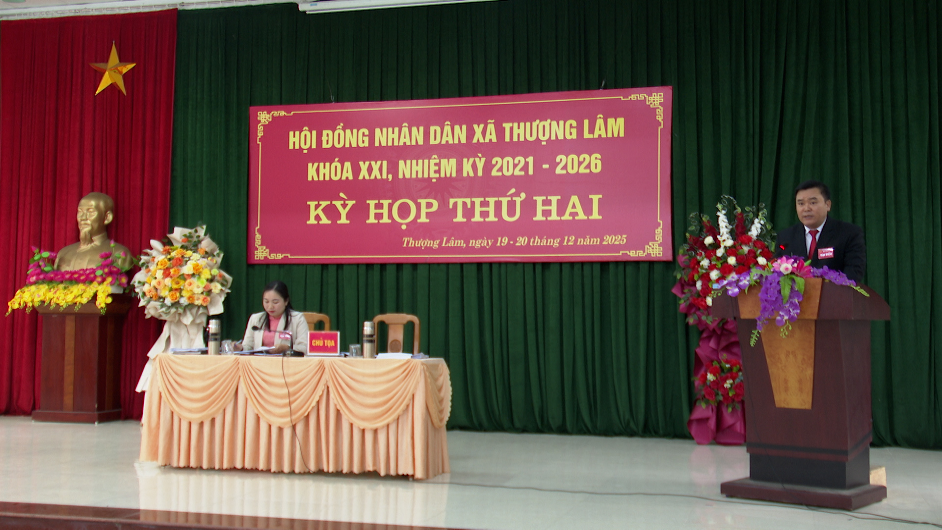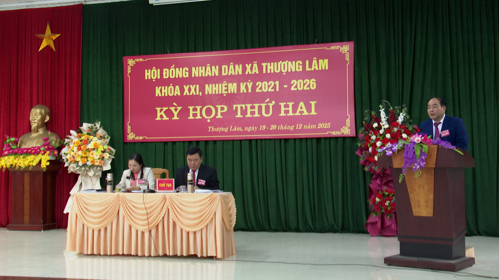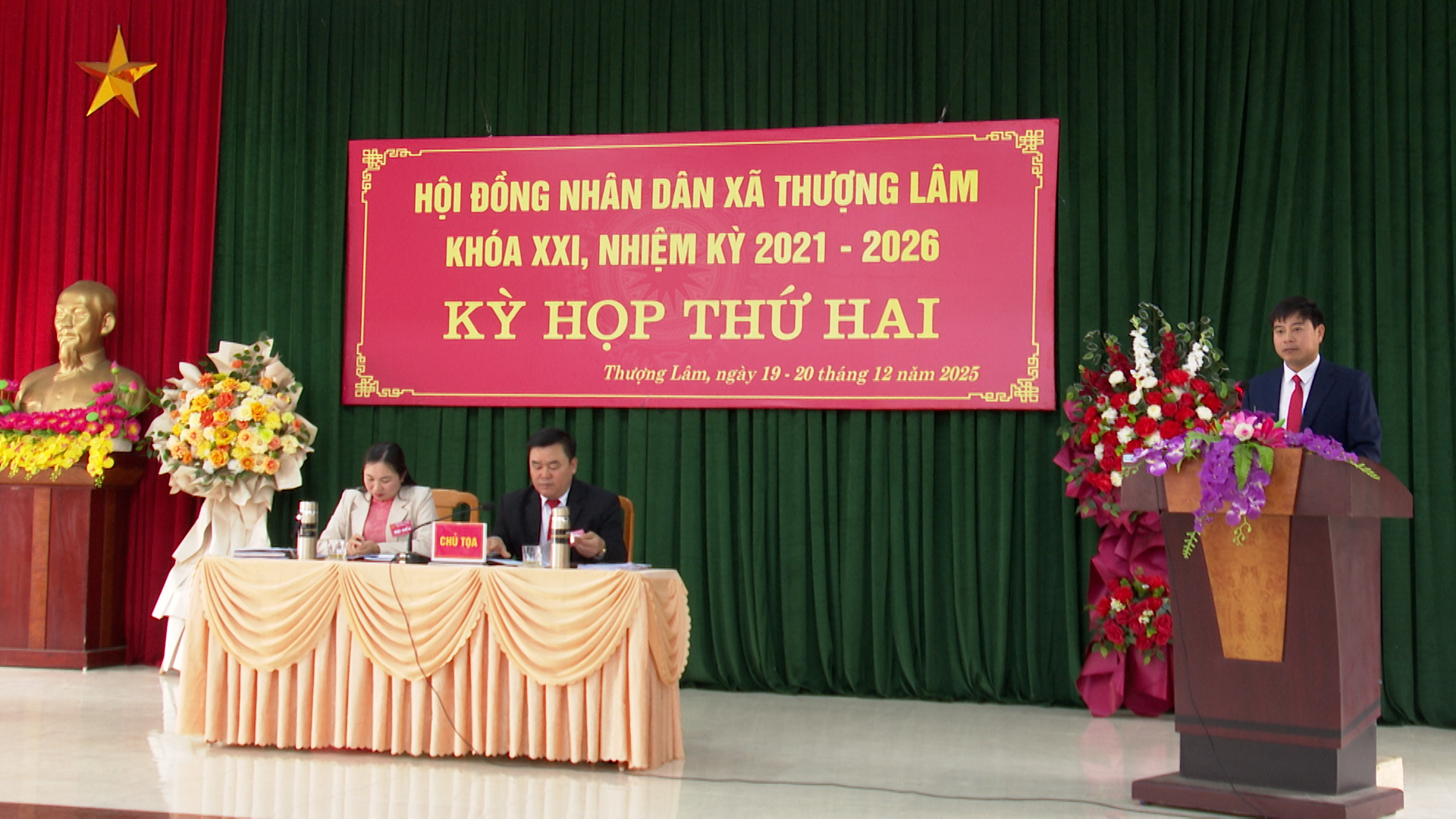 Tại kỳ họp Hội đồng nhân dân xã đã nghe các báo cáo của Ủy ban nhân dân xã về tình hình thực hiện nhiệm vụ phát triển kinh tế - xã hội, đảm bảo quốc phòng, an ninh năm 2025, dự kiến kế hoạch phát triển kinh tế - xã hội, đảm bảo quốc phòng, an ninh năm 2026. Báo cáo của Ủy ban nhân dân xã về kết quả công tác năm 2025 và phương hướng, nhiệm vụ năm 2026. Theo đó, tình hình kinh tế - xã hội của xã Thượng Lâm đã đạt được một số kết quả tích cực, các chỉ tiêu đều đạt và vượt ké hoạch, tổng sản lượng lương thực 5.862 tấn, tổng đàn gia súc trên 9.500 con, gia cầm trên 62.400 con, tỷ lệ che phủ rừng đạt 81,3%, Thu ngân sách trên địa bàn đạt 553 triệu đồng, đạt 79%, thu hút 26.000 lượt khách du lịch đạt doanh thu trên 23 tỷ đồng, duy trì 2 vườn mẫu nông thôn mới, 1 thôn nông thôn mới kiểu mẫu tại thôn Nà Tông, xóa nhà tạm, nhà dột nát cho 132 hộ, tỷ lệ trường chuẩn quốc gia đạt 100%, tỷ lệ hộ gia đình đạt danh hiệu gia đình văn hóa đạt 90%, tỷ lệ thôn đạt danh hiệu thôn văn hóa đạt 96%, tỷ lệ người dân có thẻ bảo hiểm y tế đạt 96,3%, duy trì xã đạt tiêu chí quốc gia về y tế xã, tỷ lệ người dân được sử dụng nước sinh hoạt hợp vệ sinh đạt 98%, tỷ lệ hộ nghèo giảm con 230 hộ. Cải cách thủ tục hành chính đạt được nhiều kết quả tích cực; kỷ luật, kỷ cương hành chính được chú trọng; quốc phòng, an ninh được giữ vững, trật tự an toàn xã hội được đảm bảo.