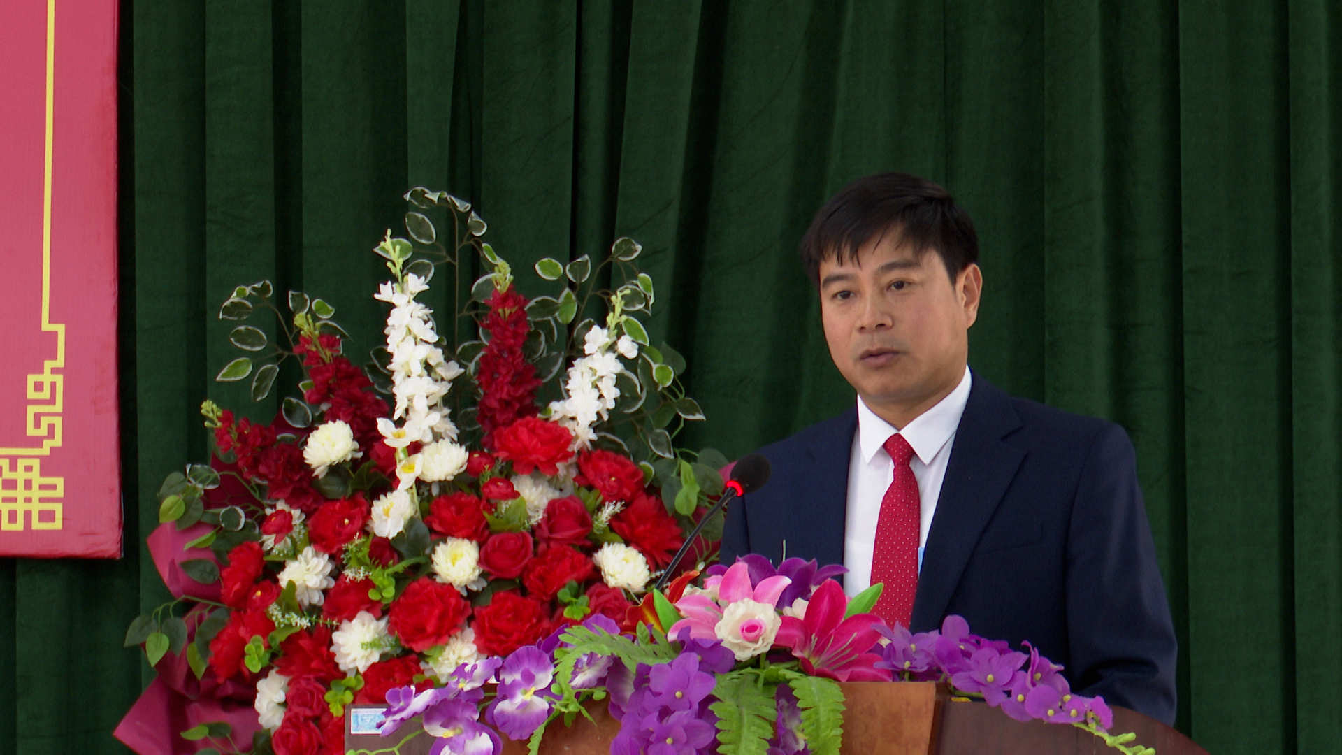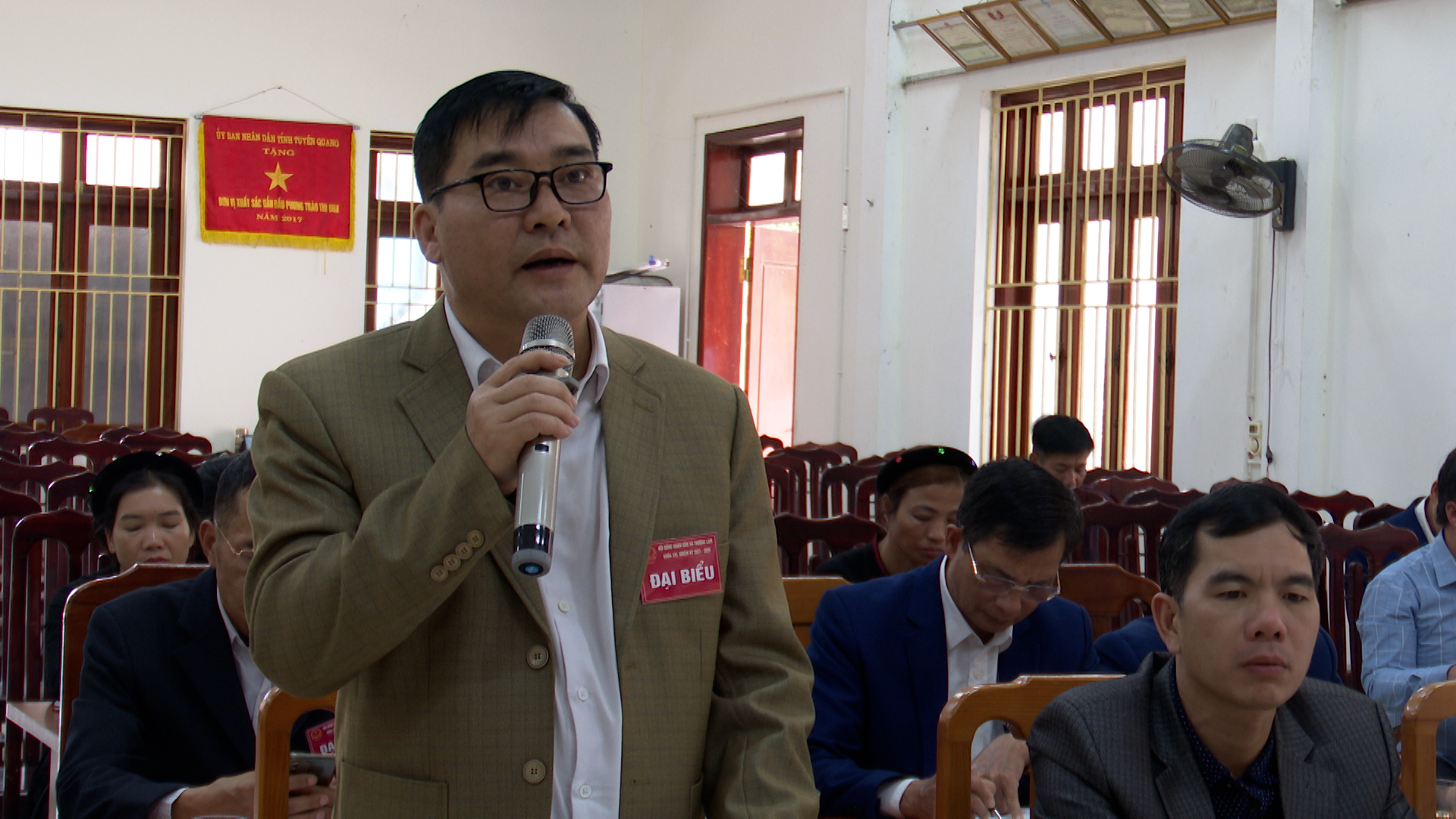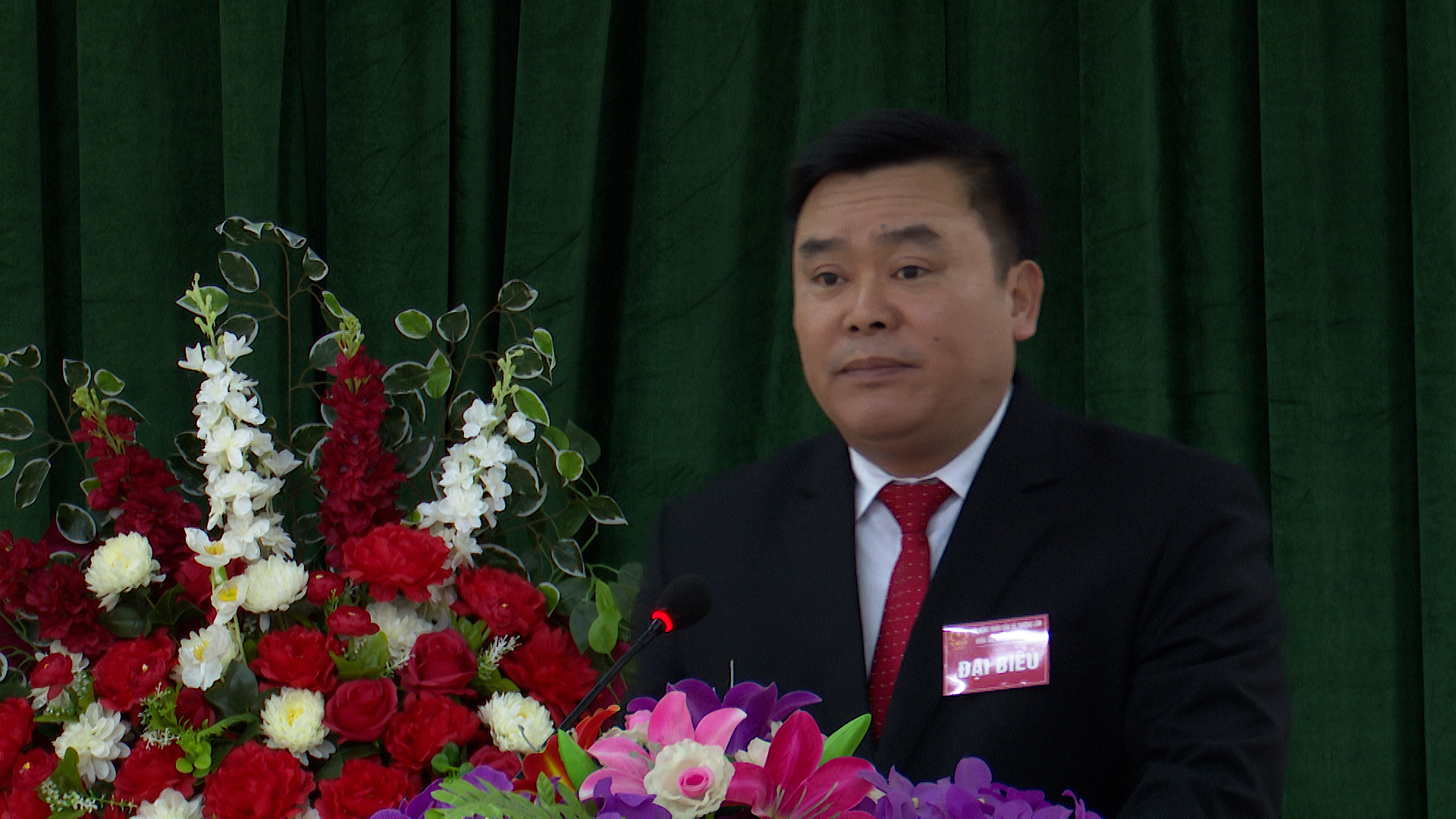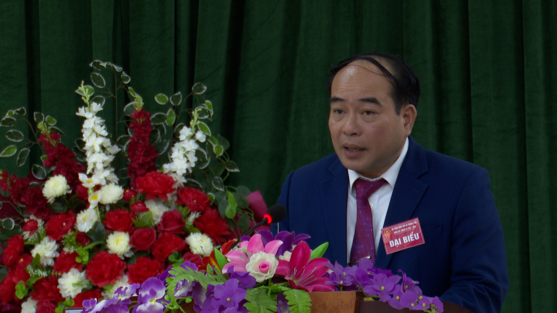 Đồng chí Nguyễn Văn Hòa, Bí thư Đảng ủy xã phát biểu tại kỳ họp