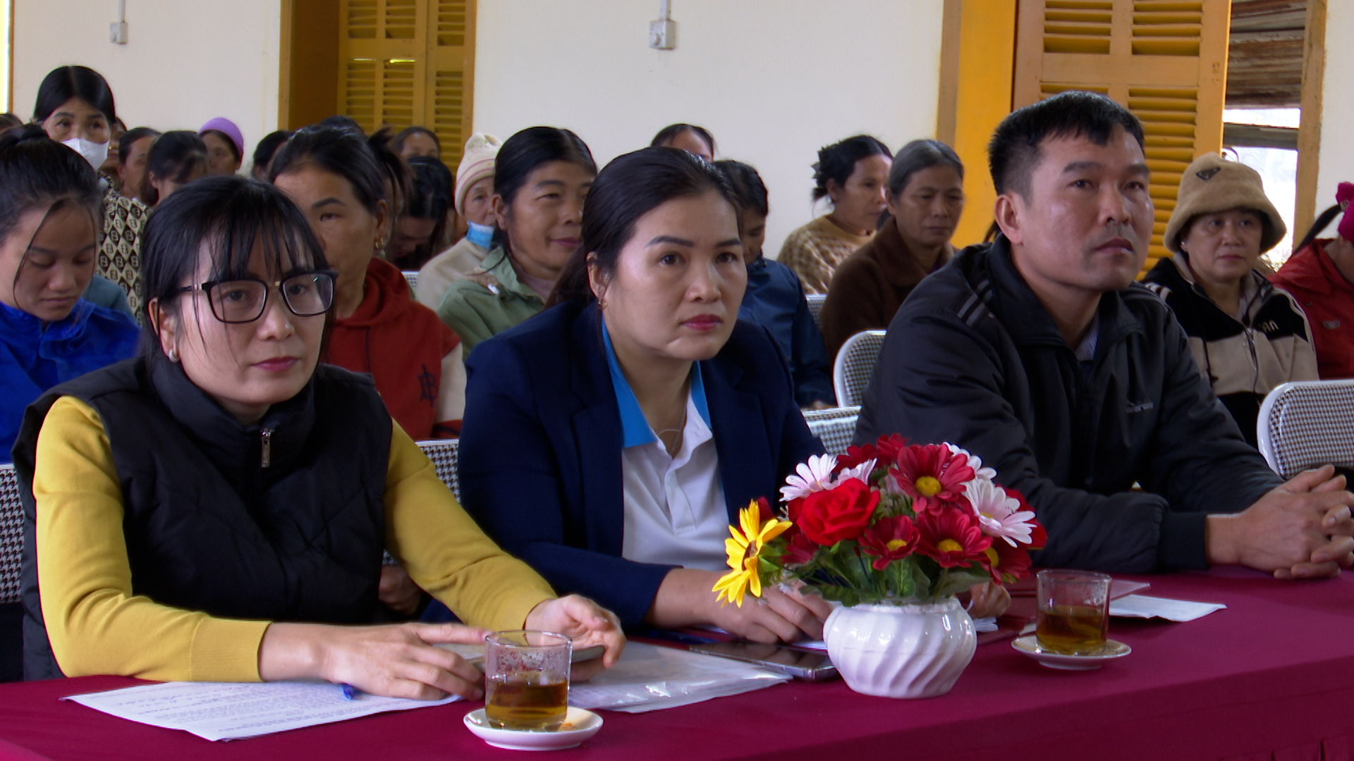 Bà con nhân dân thôn Bản Bó nghe truyền thông về bình đẳng giới