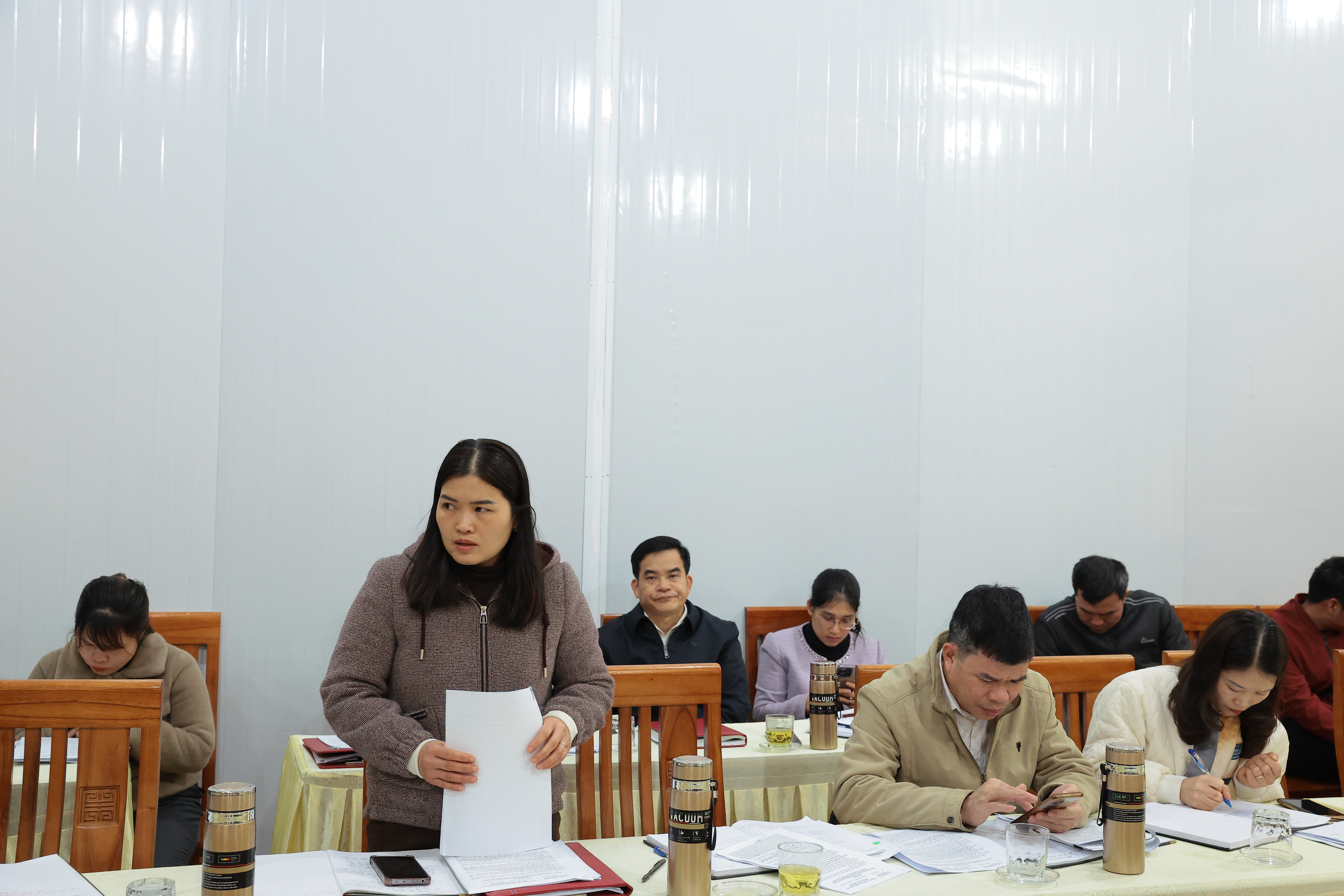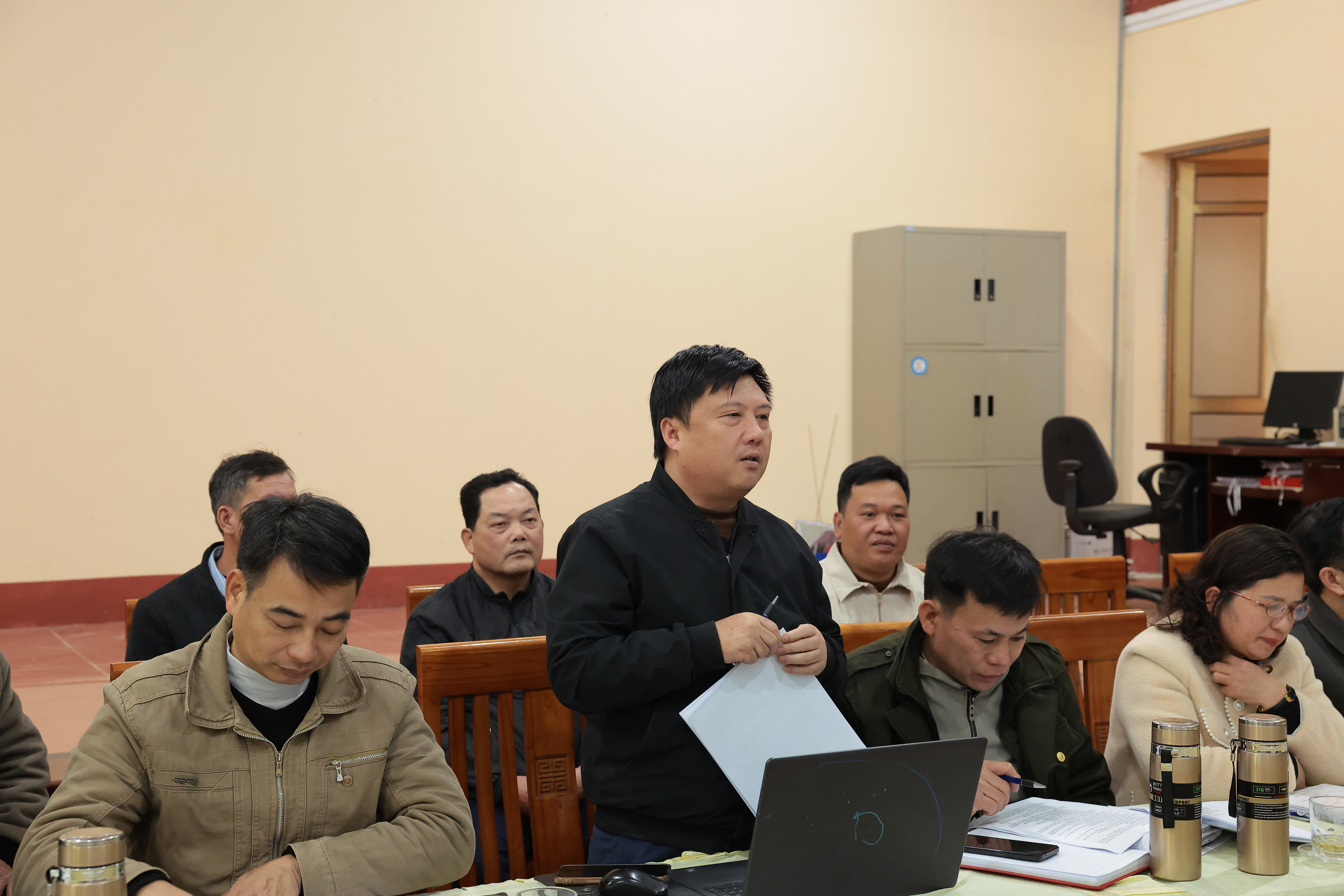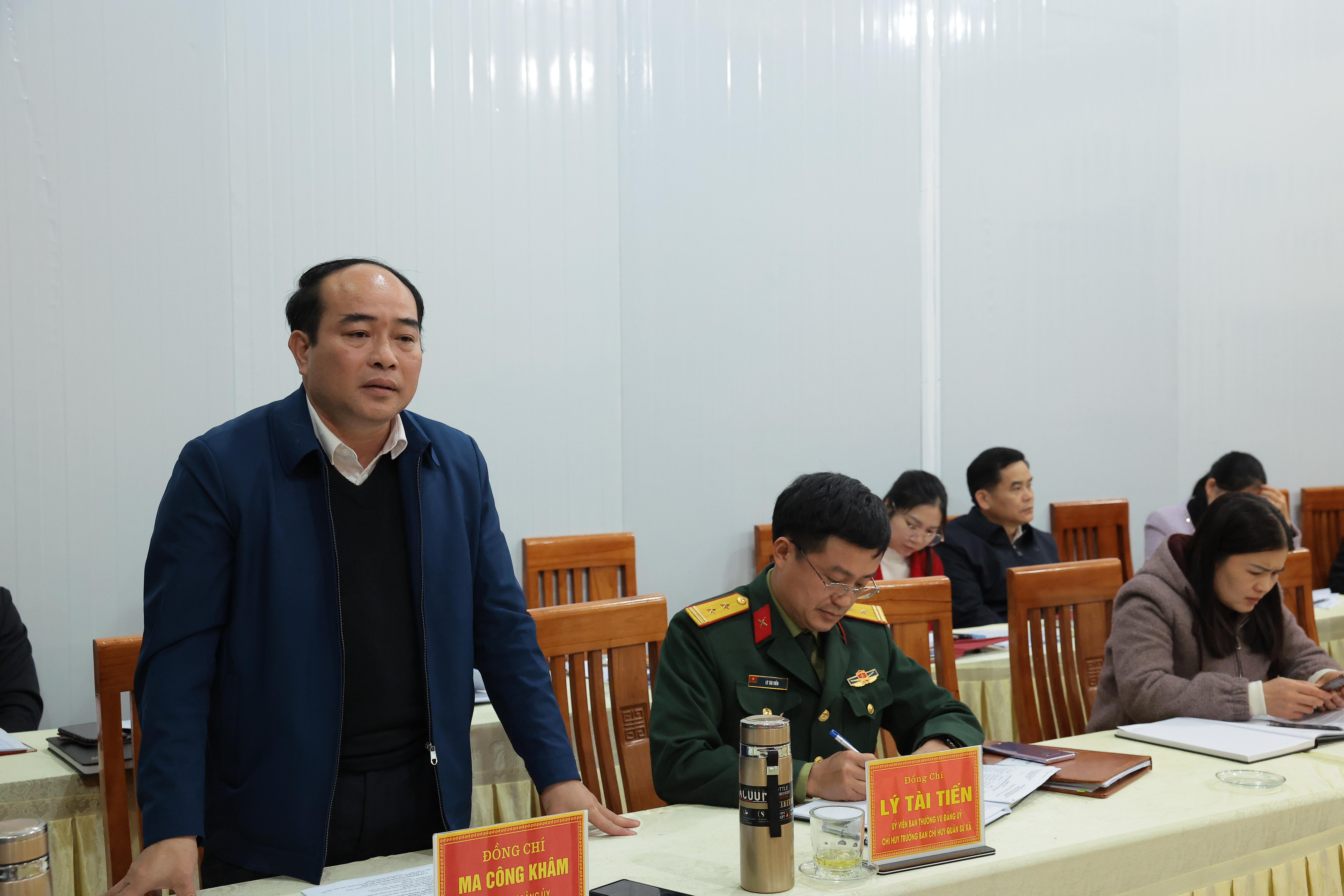 Đồng chí Ma Công Khâm, Phó Bí thư Đảng uỷ, Chủ tịch UBND xã, phát biểu tại hội nghị