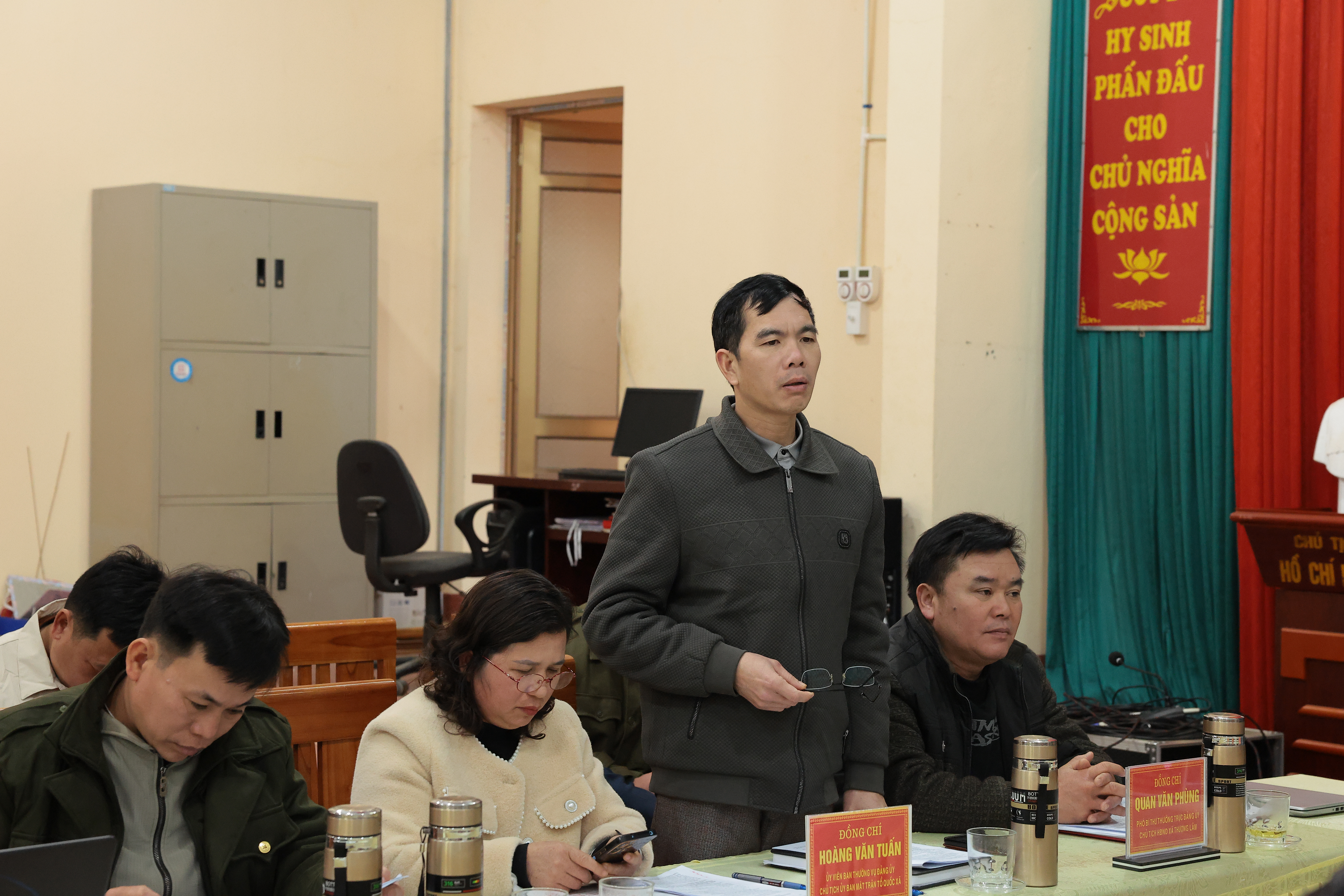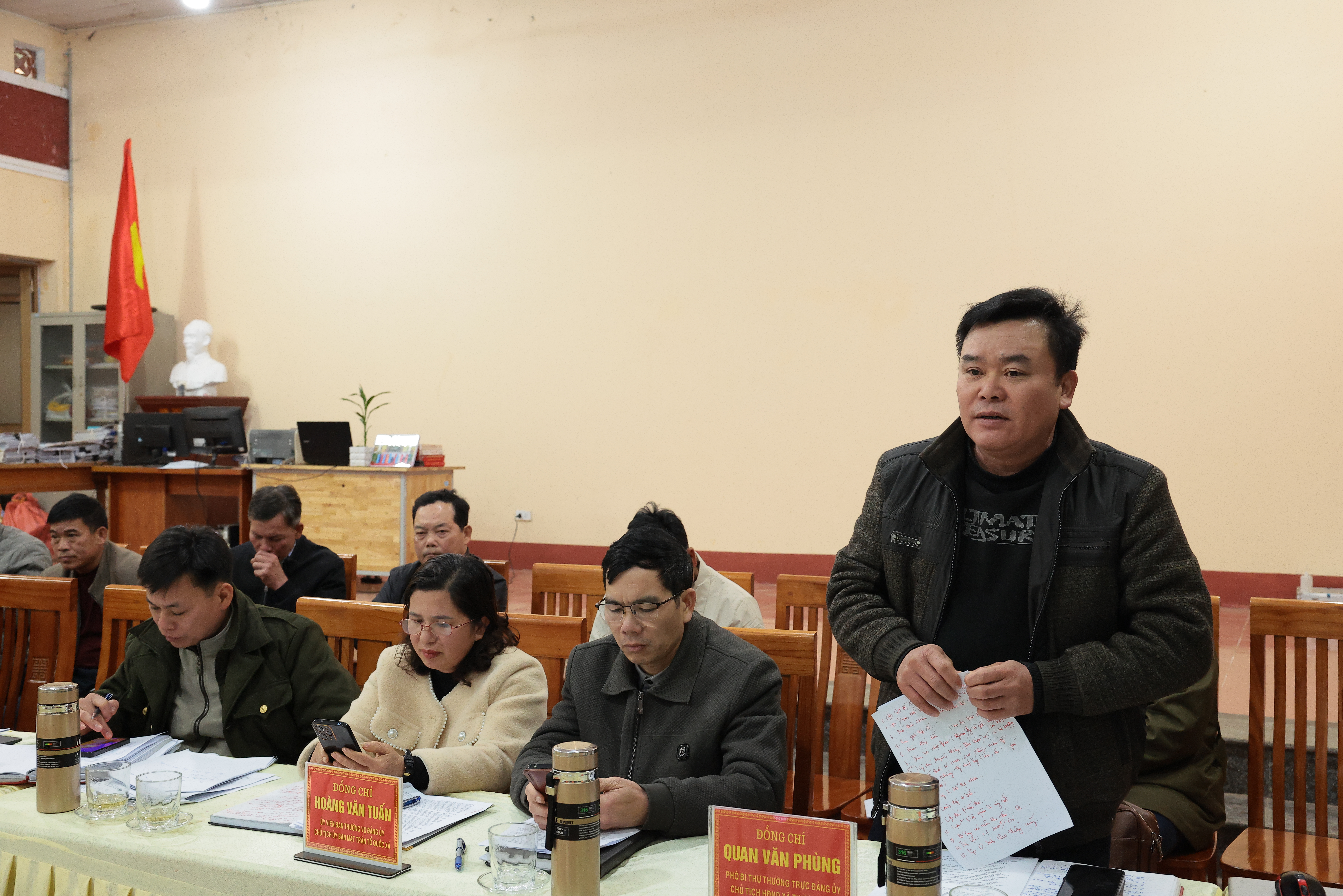 Đồng chí Quan Văn Phùng, Phó Bí thư Thường trực Đảng ủy, Chủ tịch HĐND xã phát biểu tại hội nghị