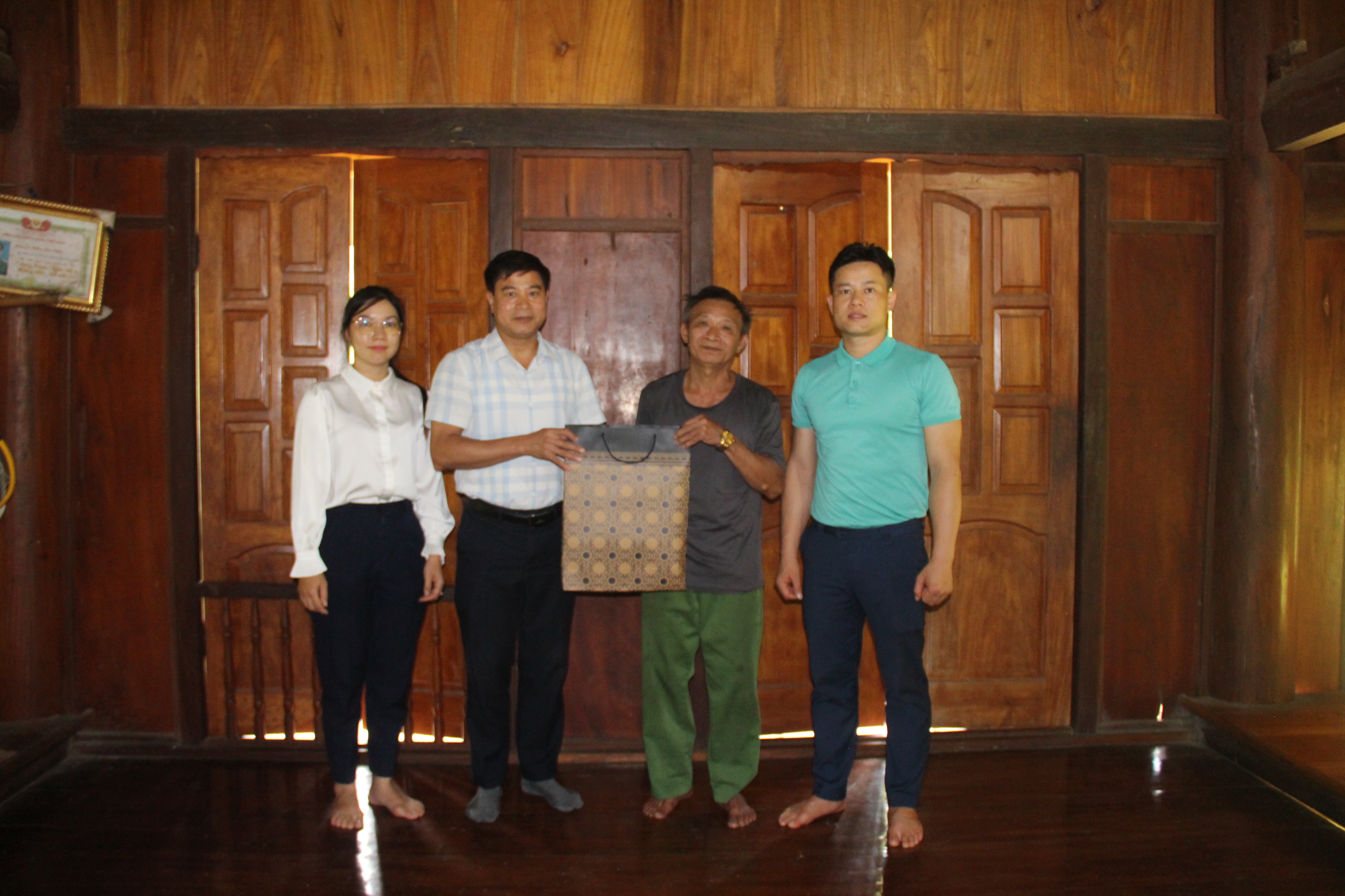 Đồng chí Nguyễn Văn Hòa, Bí thư Đảng ủy xã Thượng Lâm đã đến thăm hỏi, tặng ông Quan Văn Hiến
