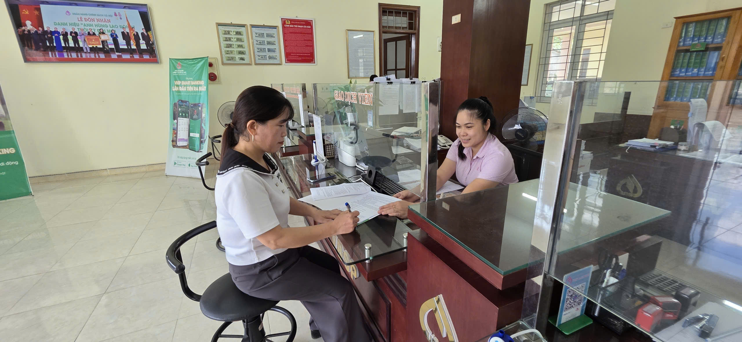 Chị Chẩu Thị Liên thôn Nà Thom, xã Thượng Lâm làm thủ tục vay vốn tại Phòng Giao dịch Ngân hàng Chính sách xã hội Lâm Bình