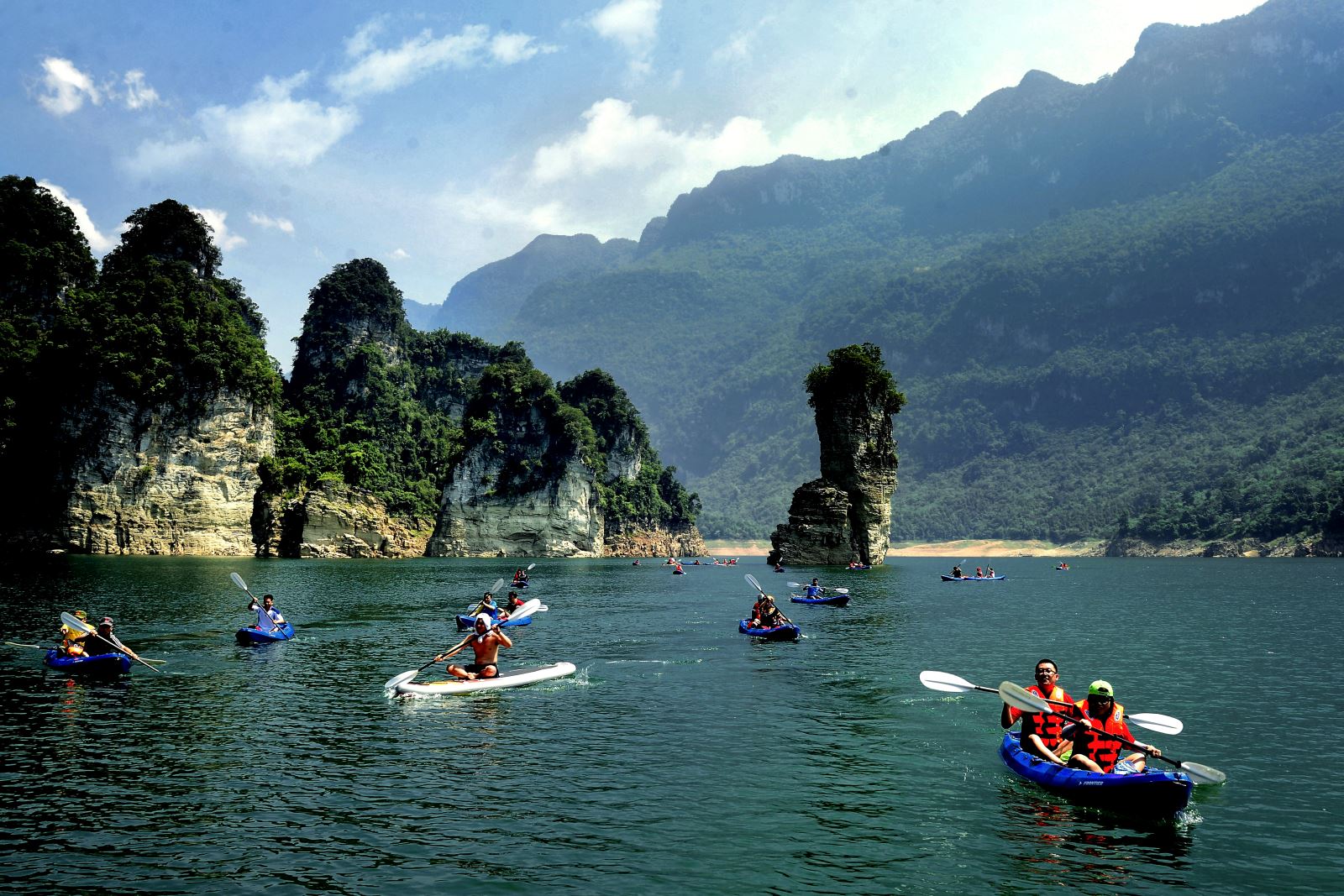 Du khách tham quan Cọc Vài, trải nghiệm các dịch vụ bơi dưới lòng hồ và chèo thuyền Kayak