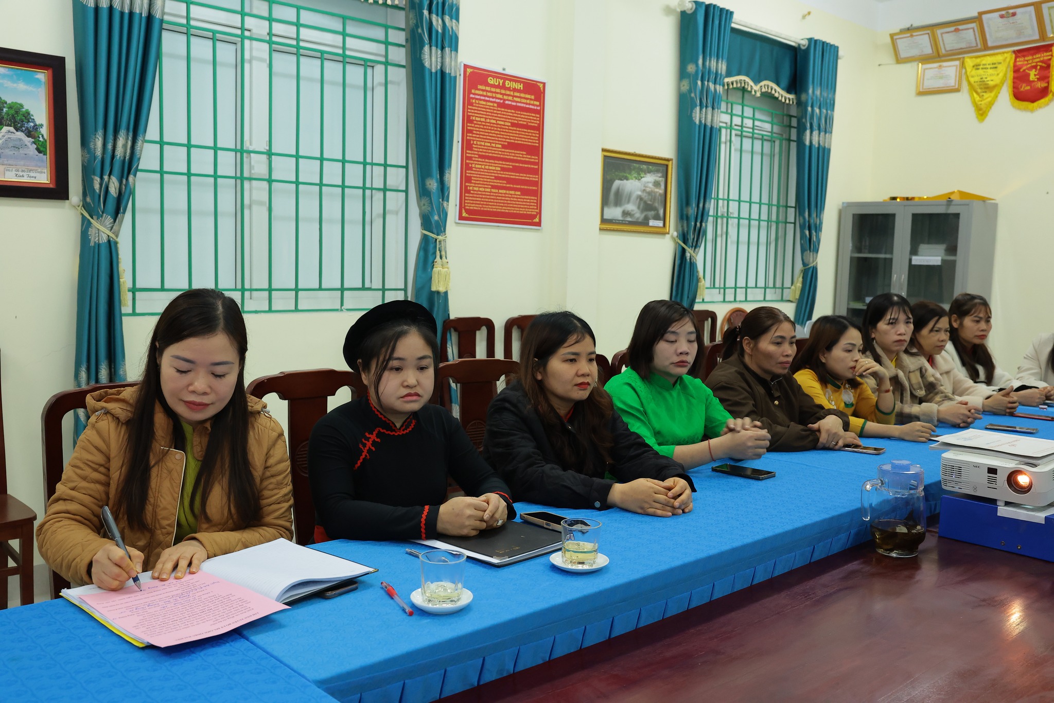 Các đại biểu troa quyết định và tặng hoa chúc mừng đồng chí Quan Thị Ngân