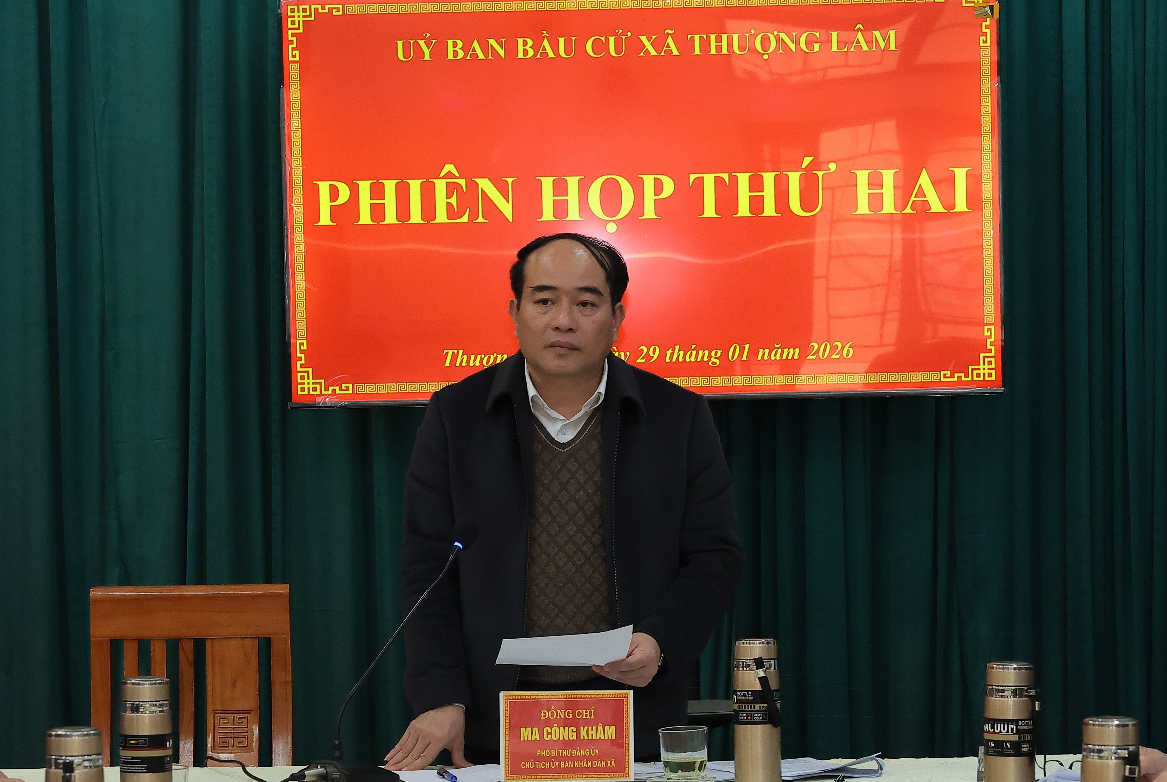 Phát biểu kết luận Phiên họp, đồng chí Ma Công Khâm, Phó Bí thư Đảng uỷ, Chủ tịch UBND xã, Chủ tịch Uỷ ban bầu cử xã đề nghị các đồng chí thuộc các bộ phận chuyên môn nêu cao tinh thần trách nhiệm, chủ động phối hợp; triển khai nhiệm vụ theo phân công, đảm bảo cuộc bầu cử diễn ra dân chủ, khách quan, đúng pháp luật, đồng thời đẩy mạnh công tác thông tin, tuyên truyền về cuộc bầu cử, bảo đảm cuộc bầu cử trên địa bàn xã diễn ra dân chủ, đúng luật, an toàn và thành công tốt đẹp.