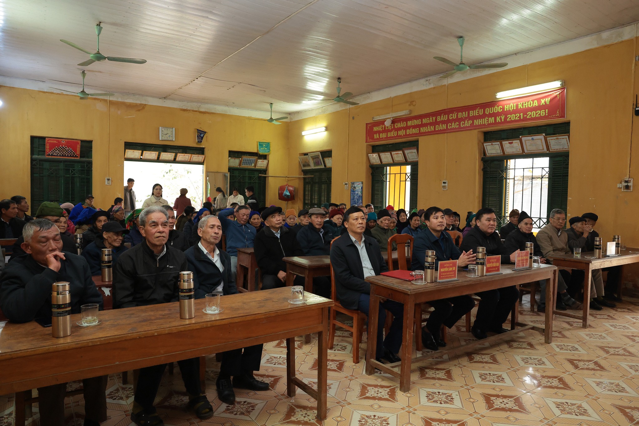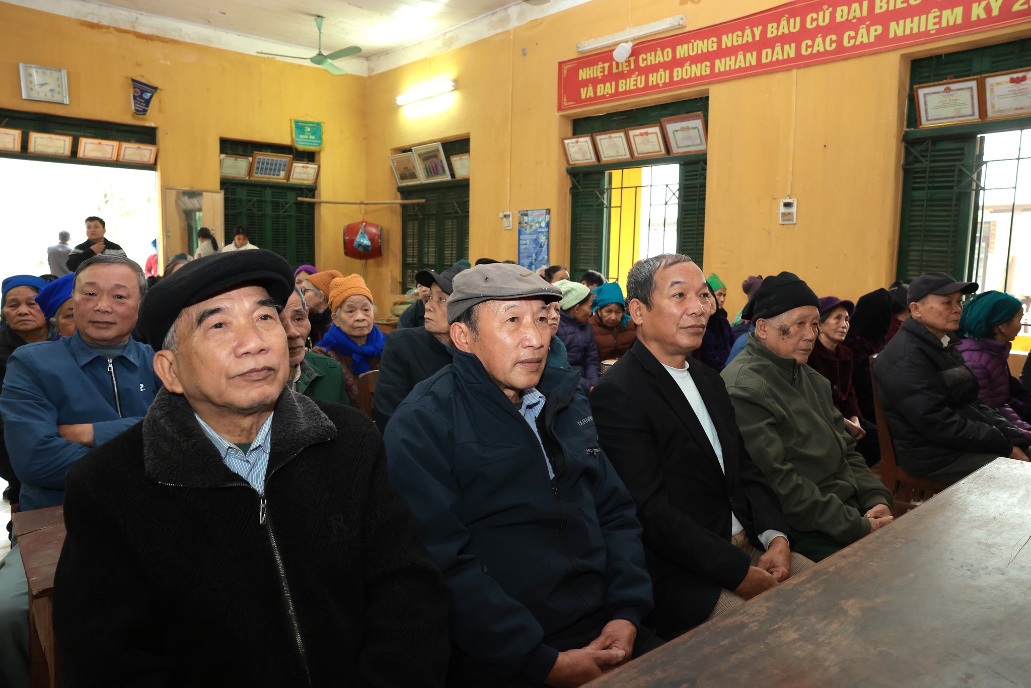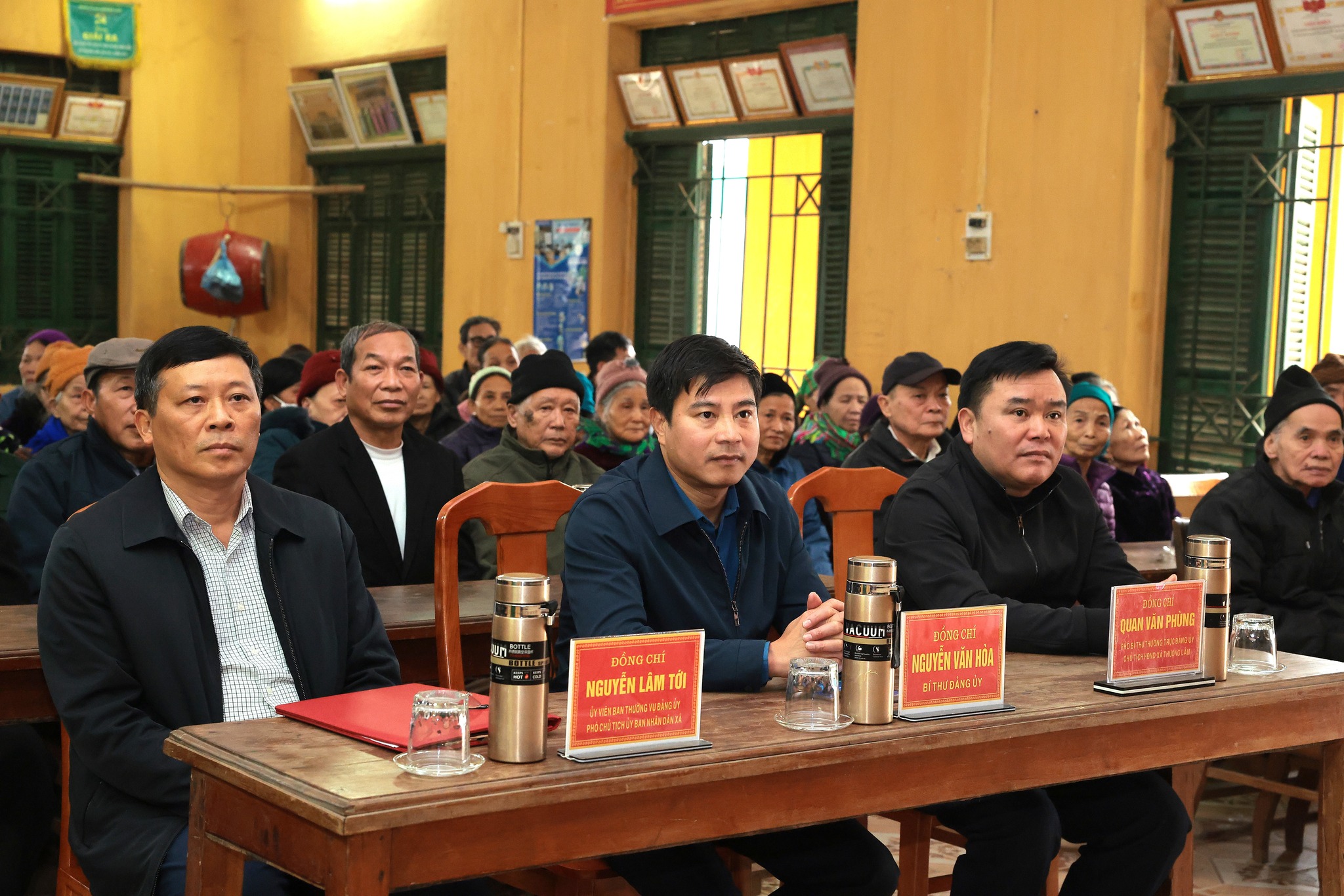 Đồng chí Quan Văn Phùng, Phó Bí thư Thường trực Đảng ủy, Chủ tịch HĐND xã trao giấy mừng thọ cho các cụ