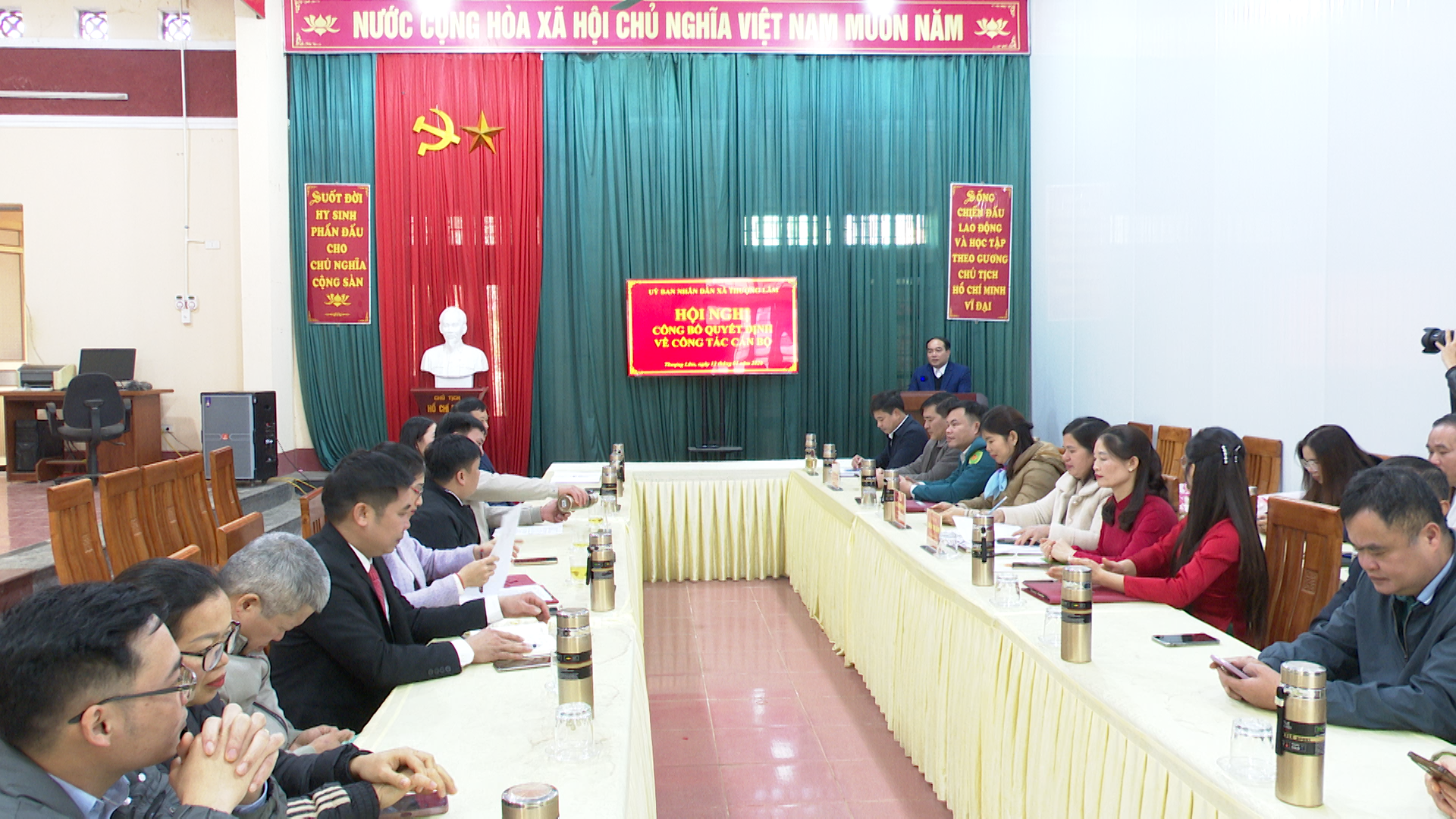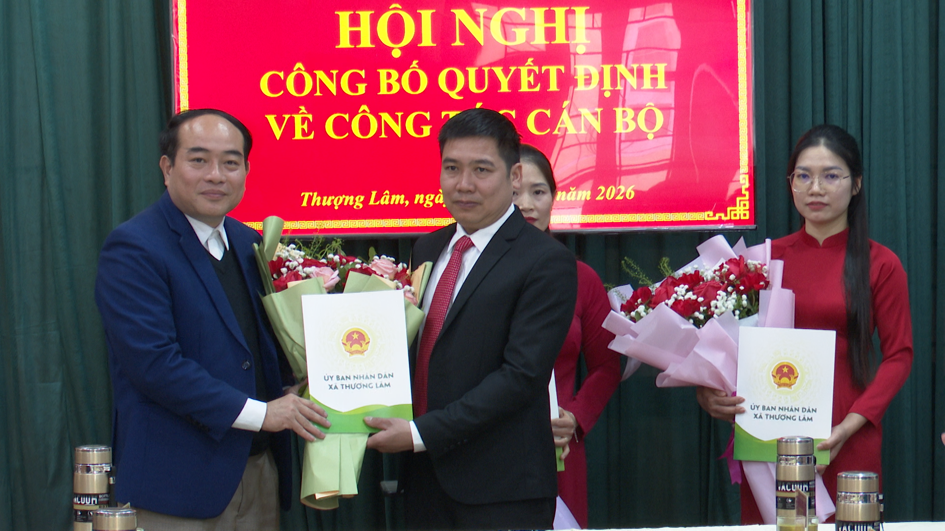 Tại Hội nghị, lãnh đạo Phòng Văn hóa - xã hội đã công bố các Quyết định của Chủ tịch UBND xã về việc bổ nhiệm chức vụ có thời hạn (05 năm) đối với các đồng chí: Ma Thị Huệ, Công chức Trung tâm Phục vụ hành chính công giữ chức vụ Phó Giám đốc Trung tâm Phục vụ hành chính công xã Thượng Lâm, tỉnh Tuyên Quang, kể từ ngày 08/01/2026; Nguyễn Văn Dâng, viên chức Trung tâm Dịch vụ công giữ chức vụ Phó Giám đốc Trung tâm Dịch vụ công xã Thượng Lâm, tỉnh Tuyên Quang, kể từ ngày 08/01/2026; Lê Thị Trang, Công chức Phòng Văn hóa - Xã hội giữ chức vụ Phó Trưởng phòng Văn hóa - Xã hội xã Thượng Lâm, tỉnh Tuyên Quang, kể từ ngày 08/01/2026.