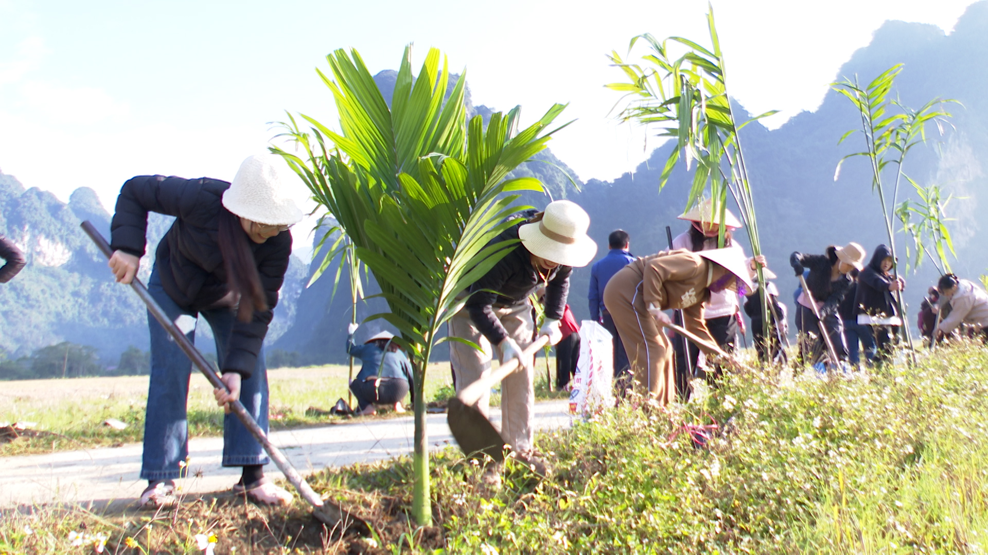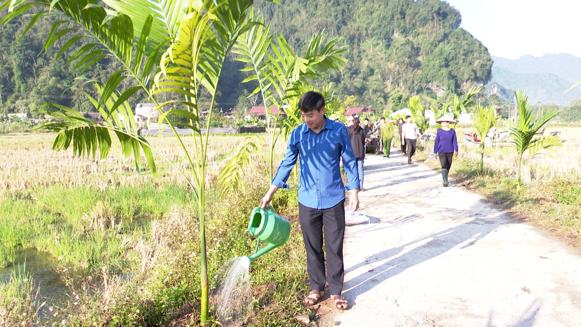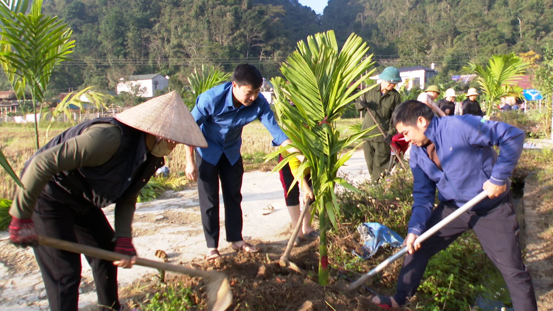 Tại buổi ra quân, các đồng chí lãnh đạo Đảng uỷ, HĐND, UBND, UBMTTQ Việt Nam xã, cùng các cán bộ, đảng viên, công chức, viên chức và bà con nhân dân đã tham gia trồng 450 cây Cau dọc hai bên tuyến đường từ ngã 3 thôn Nà Tông đi thôn Nà Thuôn với chiều dài gần 1000m.