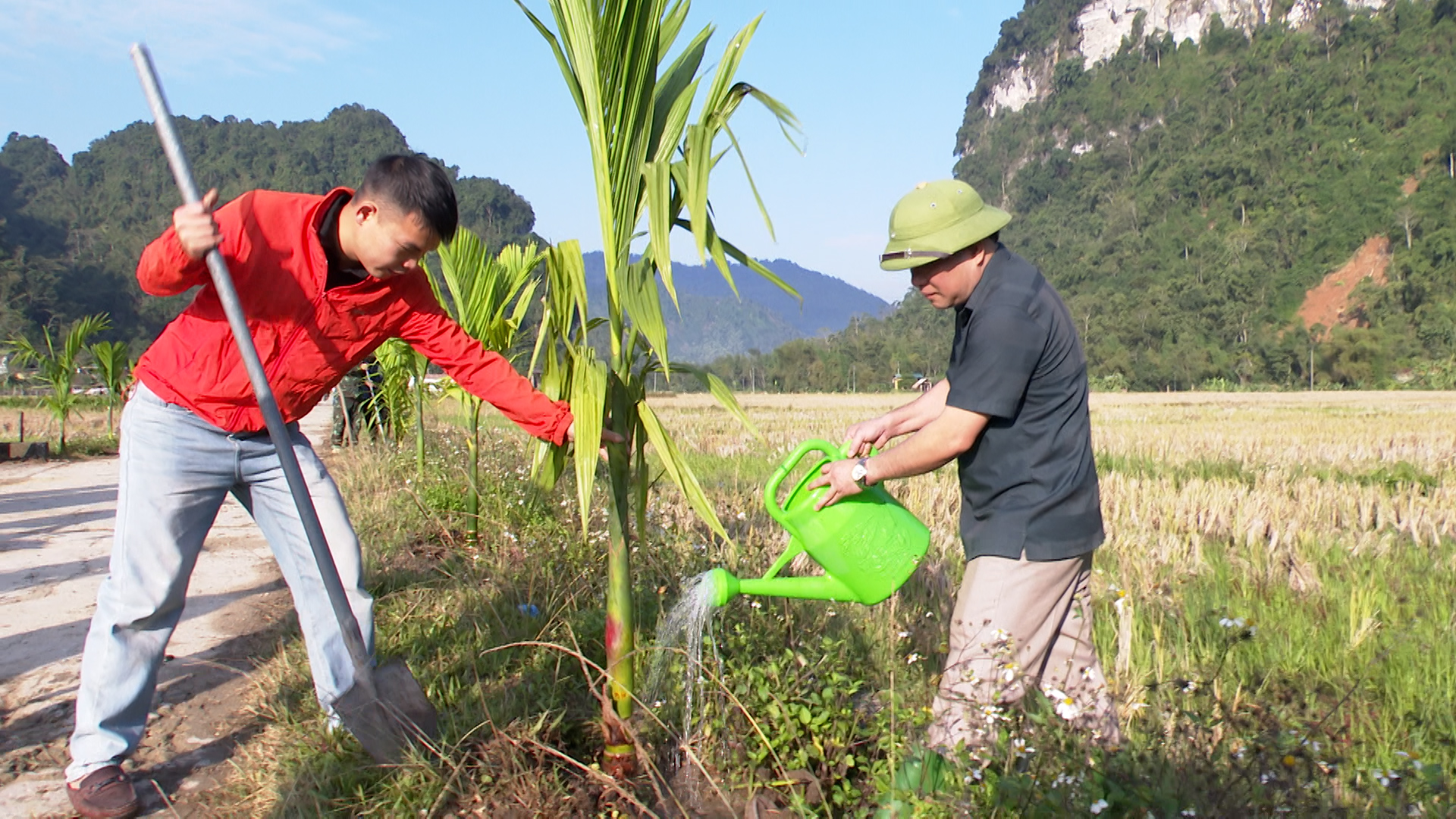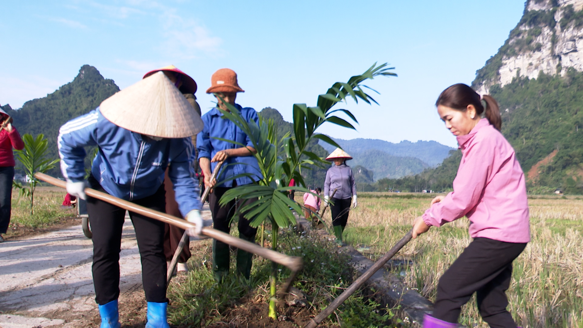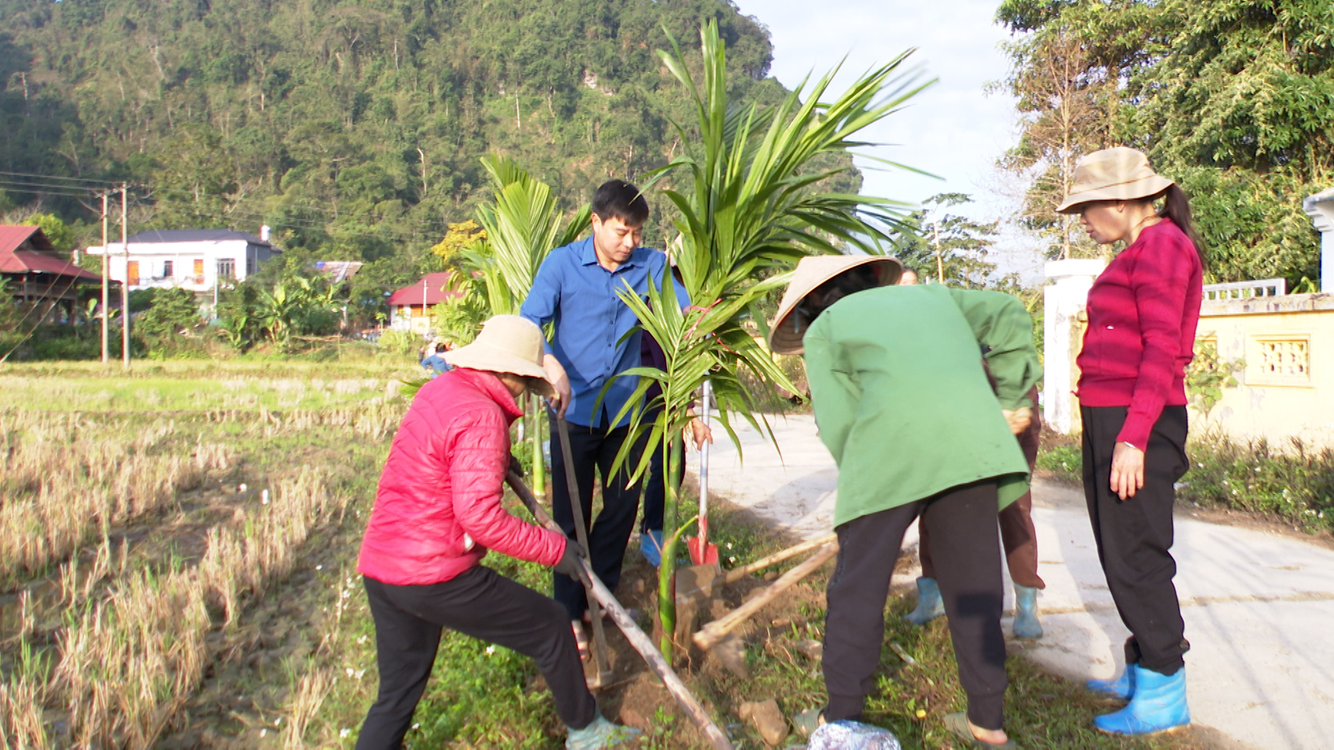 Tại buổi ra quân, các đồng chí lãnh đạo Đảng uỷ, HĐND, UBND, UBMTTQ Việt Nam xã, cùng các cán bộ, đảng viên, công chức, viên chức và bà con nhân dân đã tham gia trồng 450 cây Cau dọc hai bên tuyến đường từ ngã 3 thôn Nà Tông đi thôn Nà Thuôn với chiều dài gần 1000m.